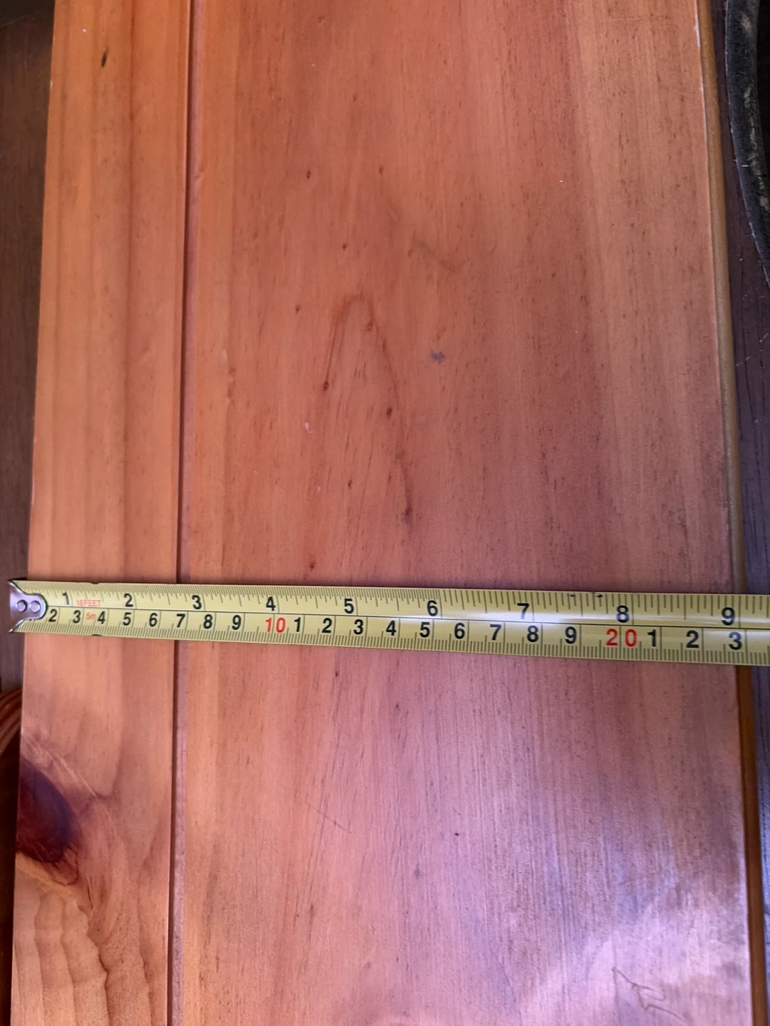 Two wooden floating shelves with four decorative triangular brackets. The shelf measures approximately 3 feet in length and 9 inches in depth. It's made of solid oak wood and comes disassembled with its mounting hardware included. This shelf is great for displaying decor or books! I used it in the kitchen for cookbooks and decorative plates and pieces.