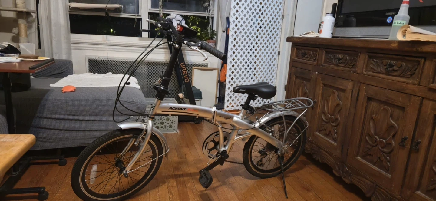 Buy & SellAOMAIS Silver Folding BicycleAOMAIS Silver Folding Bicycle$236AOMAIS silver folding bicycle with a rear rack. Includes a U-shaped combination lock and a repair tool kit.ConditionGoodWHERE TO MEETCheck LocationView MapSELLERCarolinaElmhurst361 review1 chats·0 favorites·73 viewsSEND CHAT TO SELLERHi Carolina! I’m interested in your listing.Hi Carolina! I’m interested in your listing.Get the Karrot app to chatSign In to chat