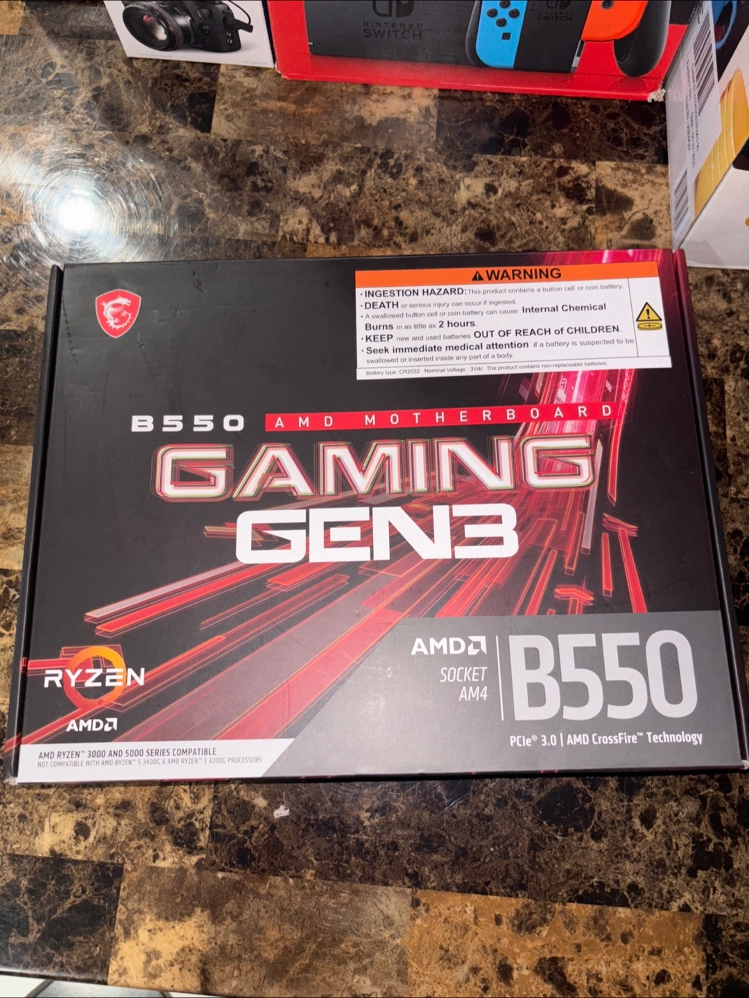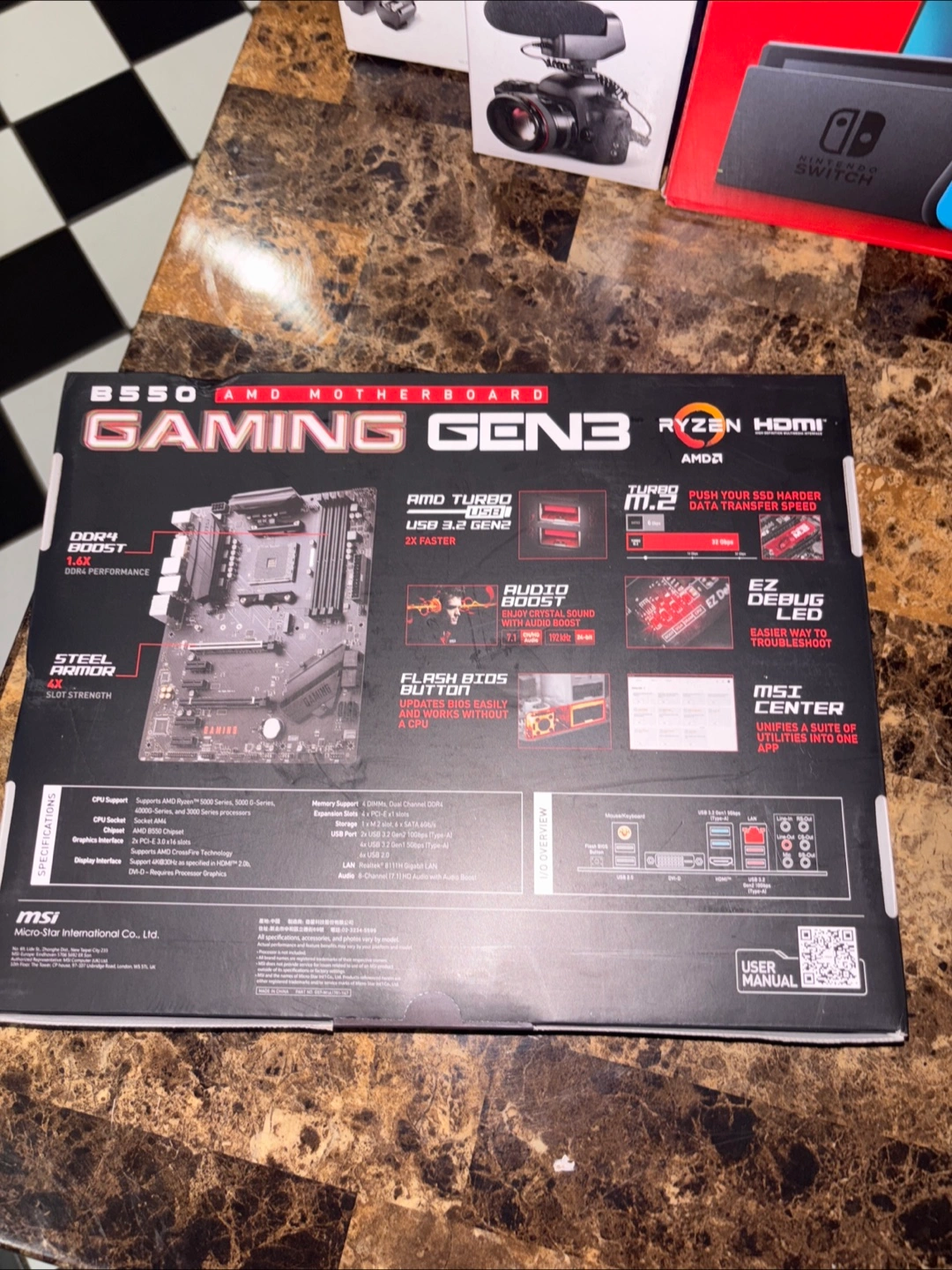 18Selling a brand new MSI B550 Gaming Gen3 AMD Motherboard! It supports AMD Ryzen 5000 series, 5000 G-series, 4000 G-series, and 3000 series processors. Comes with an EZ Debug LED for easy troubleshooting and MSI Center software to unify a suite of tools into one app. The box is included!