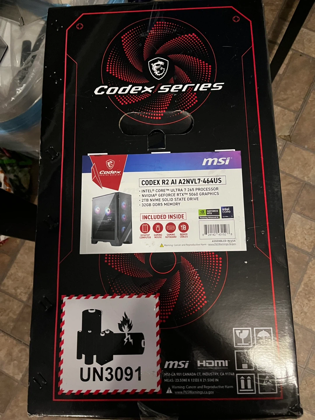 80Selling an MSI Codex R2 AI A2NVL7-464US gaming PC. It comes with: - Intel Core Ultra 7 265 Processor - NVIDIA GeForce RTX 5060 Graphics - 2TB NVMe Solid State Drive - 32GB DDR5 Memory Also included inside are the desktop computer, gaming mouse, gaming keyboard, and power cables! The box is included too