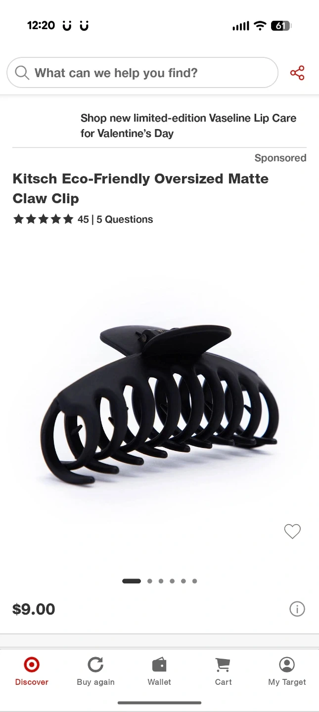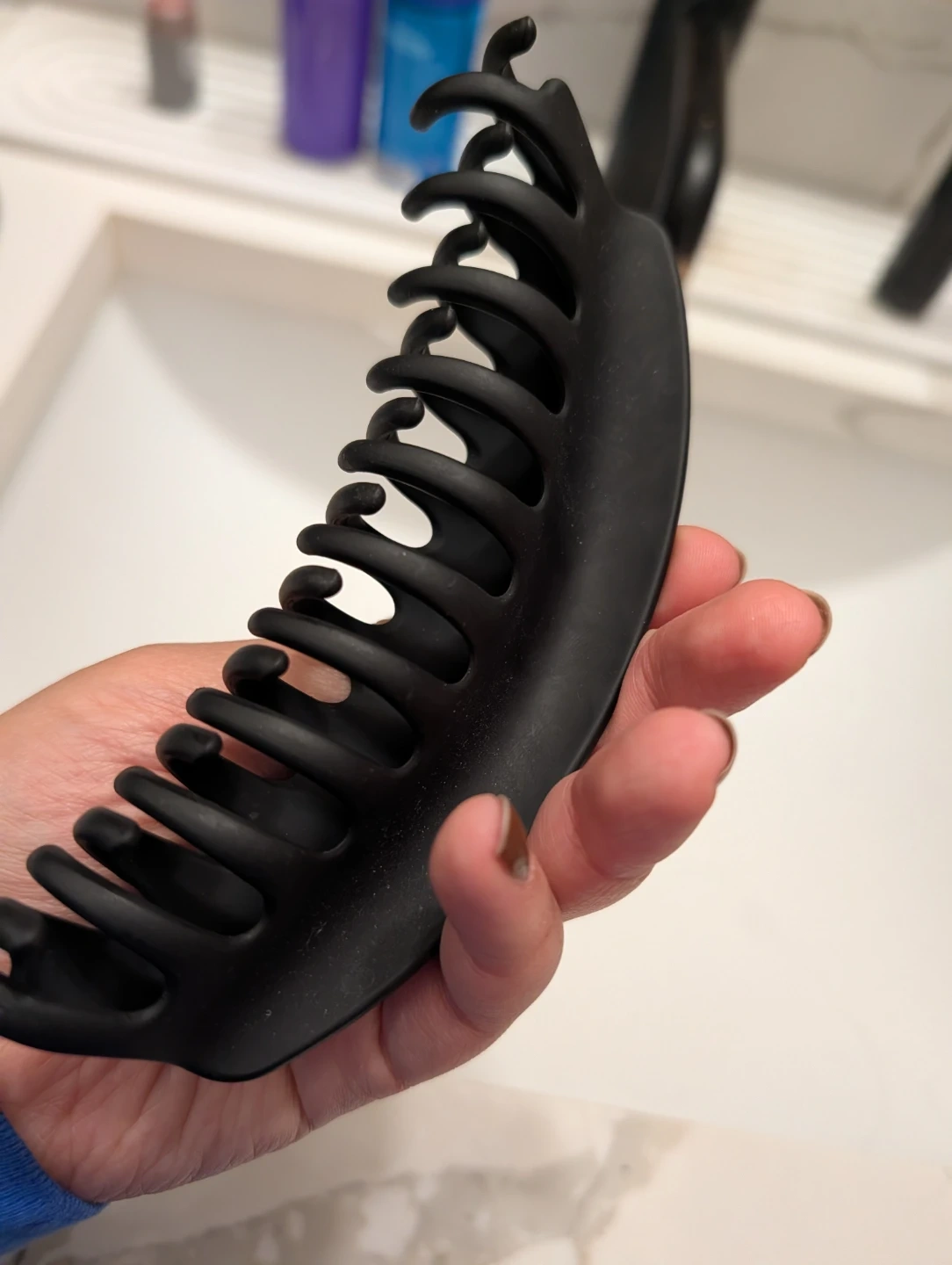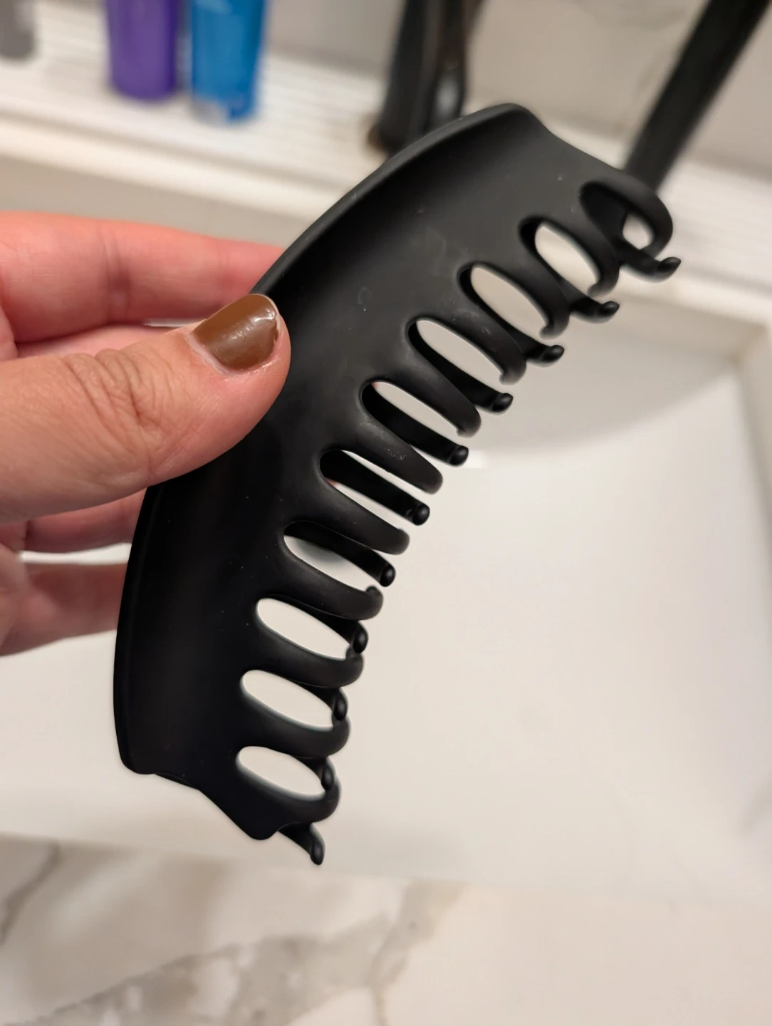 Selling a Kitsch claw clip in black! It's an oversized matte clip that's eco-friendly. Great for keeping your hair up and out of your face. Retails for $9