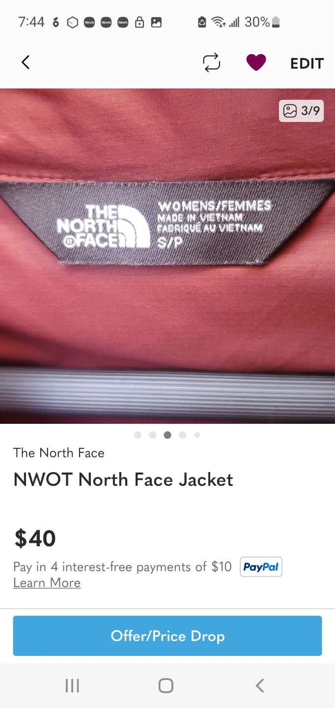 Selling a NWOT (new without tags) North Face jacket in women's size small. It's in excellent condition and ready for a new home!