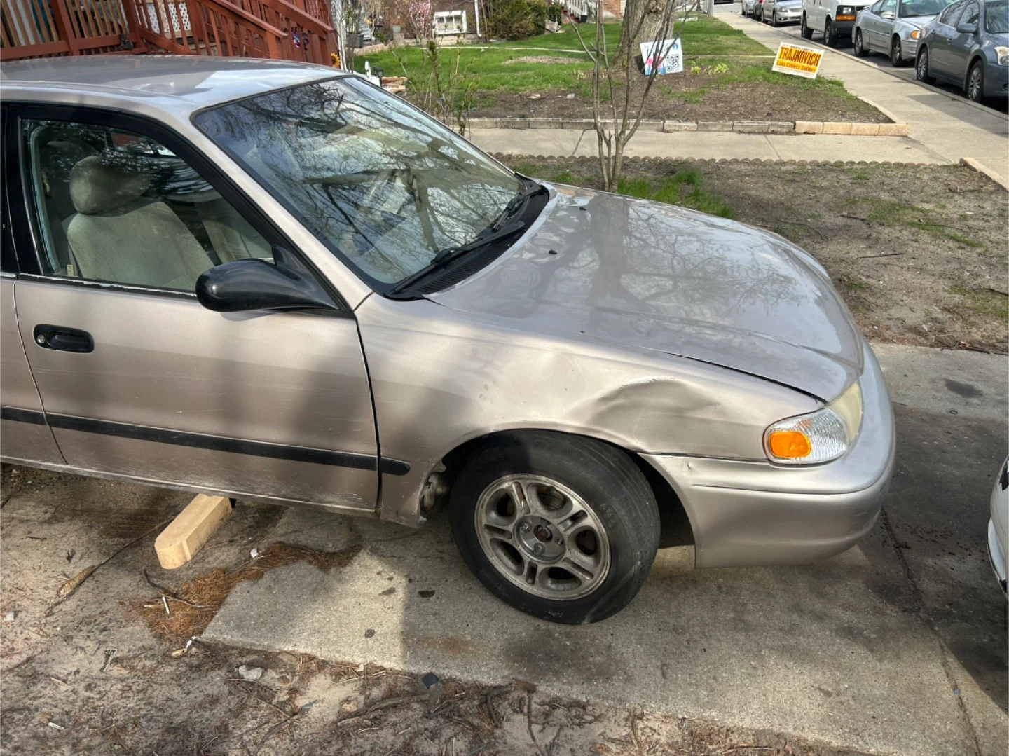 The exterior has some visible damage on the front right fender and hood. 4 cylinder gas saver , 134,000 Miles has lots of life . If you want A to B car this it. Just too small for my family. The car just passed omission look at the new registration and plates I just purchased