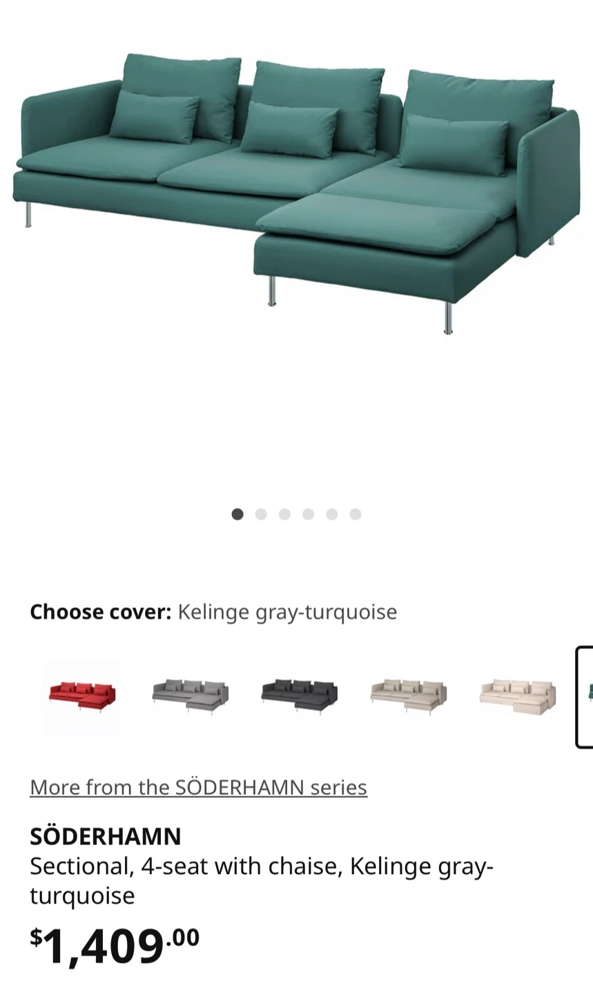 IKEA SÖDERHAMN Sectional Sofa - Kelinge Gray-Turquoise