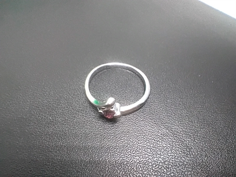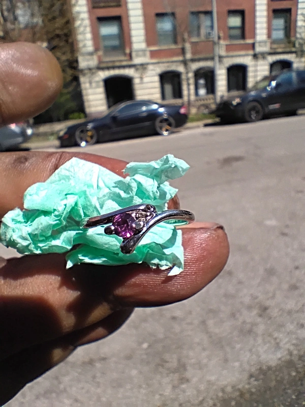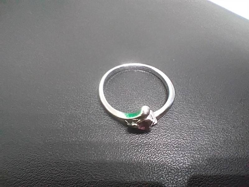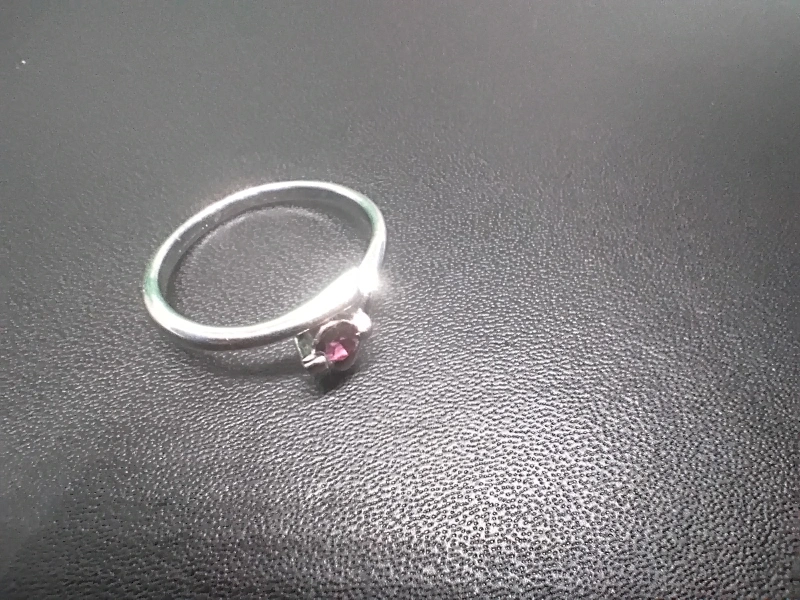 Simple silver band ring. Features a small purple gemstone accent and diamond π. Elegant and understated design. Perfect for everyday wear.