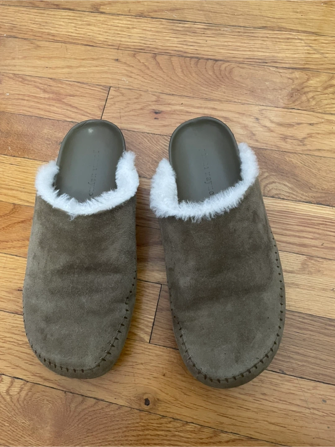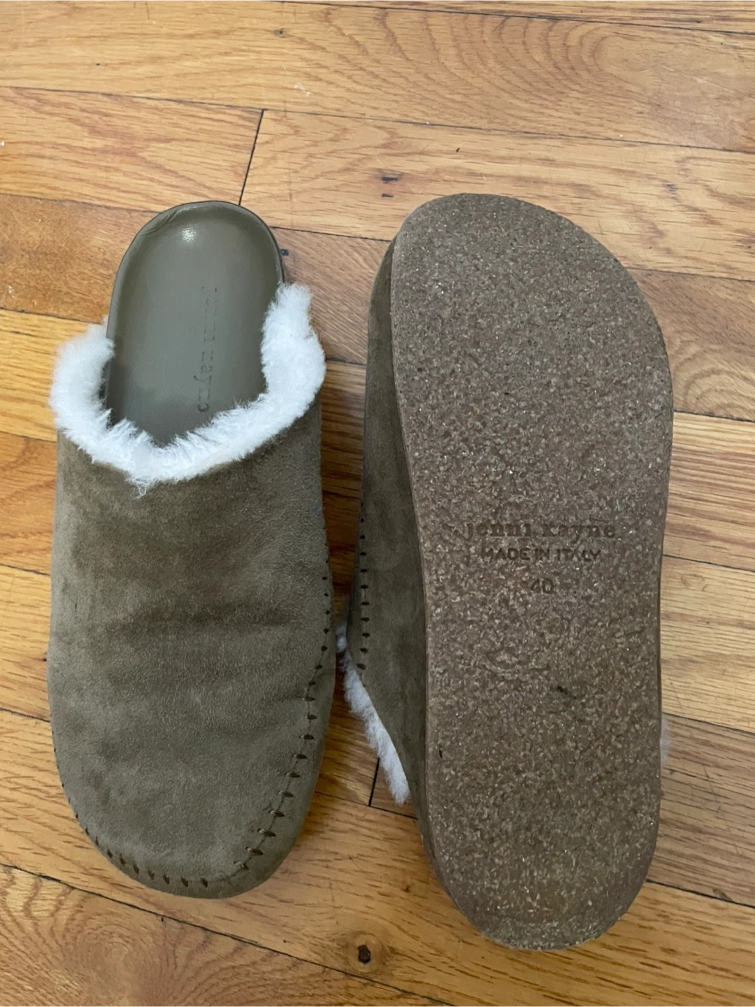 10Mules a pair of Jenni Kayne shearling lined suede mules. They are a size 40, which is a US size 9. They are in good condition and super comfortable!