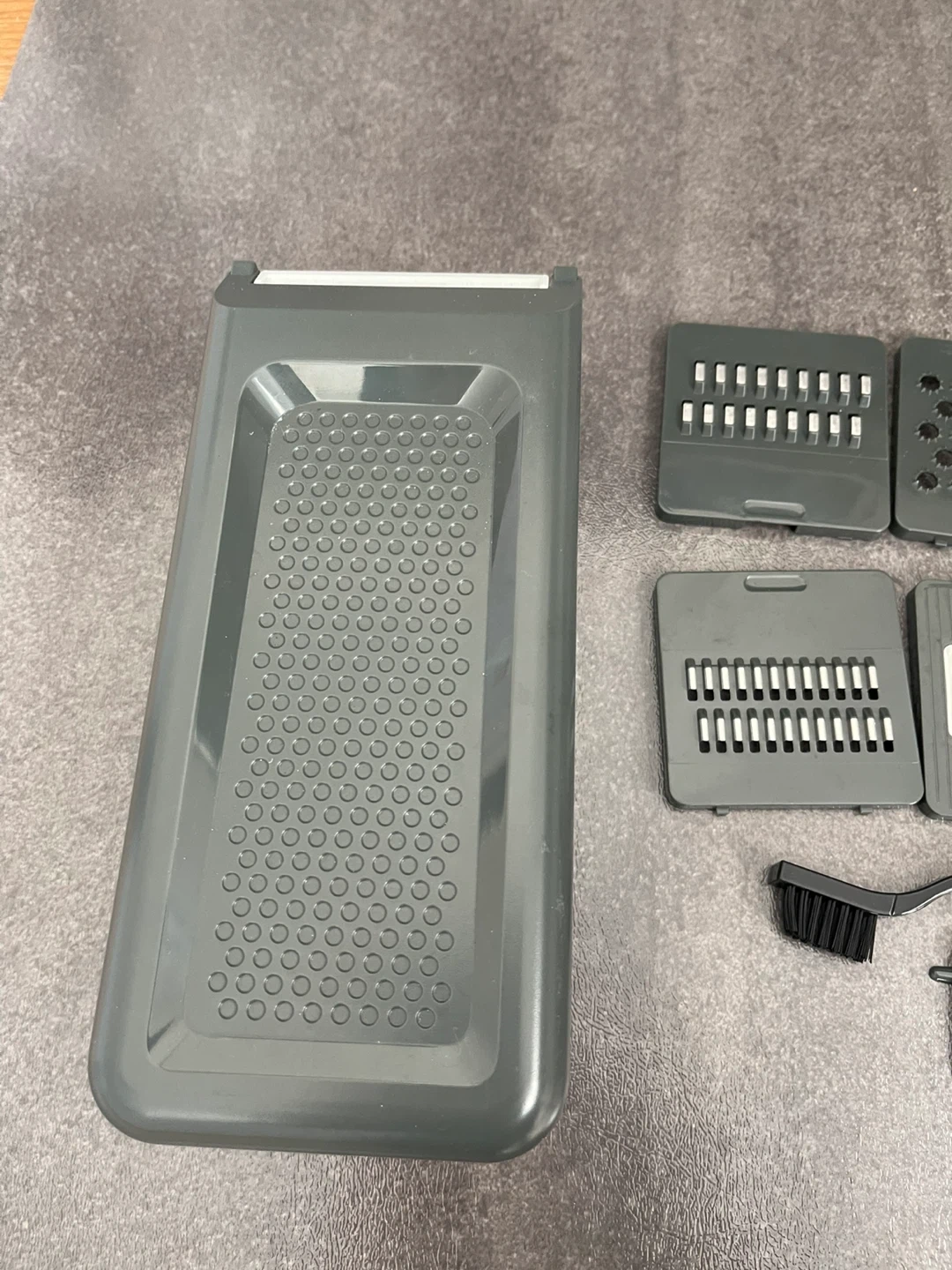 60I'm selling a vegetable chopper, dicer, and slicer set! It comes with multiple interchangeable blades for various cutting styles. It’s in great condition and ready to help you prep your veggies with ease • Includes multiple interchangeable blades for slicing, grating, dicing, and julienne cuts. • Comes with safety food holder, cleaning brush, and container base. • Easy to use and clean — ideal for vegetables, cheese, fruit, and more. • Compact design saves space in your kitchen. Condition: Like new – barely used, all parts included and clean.