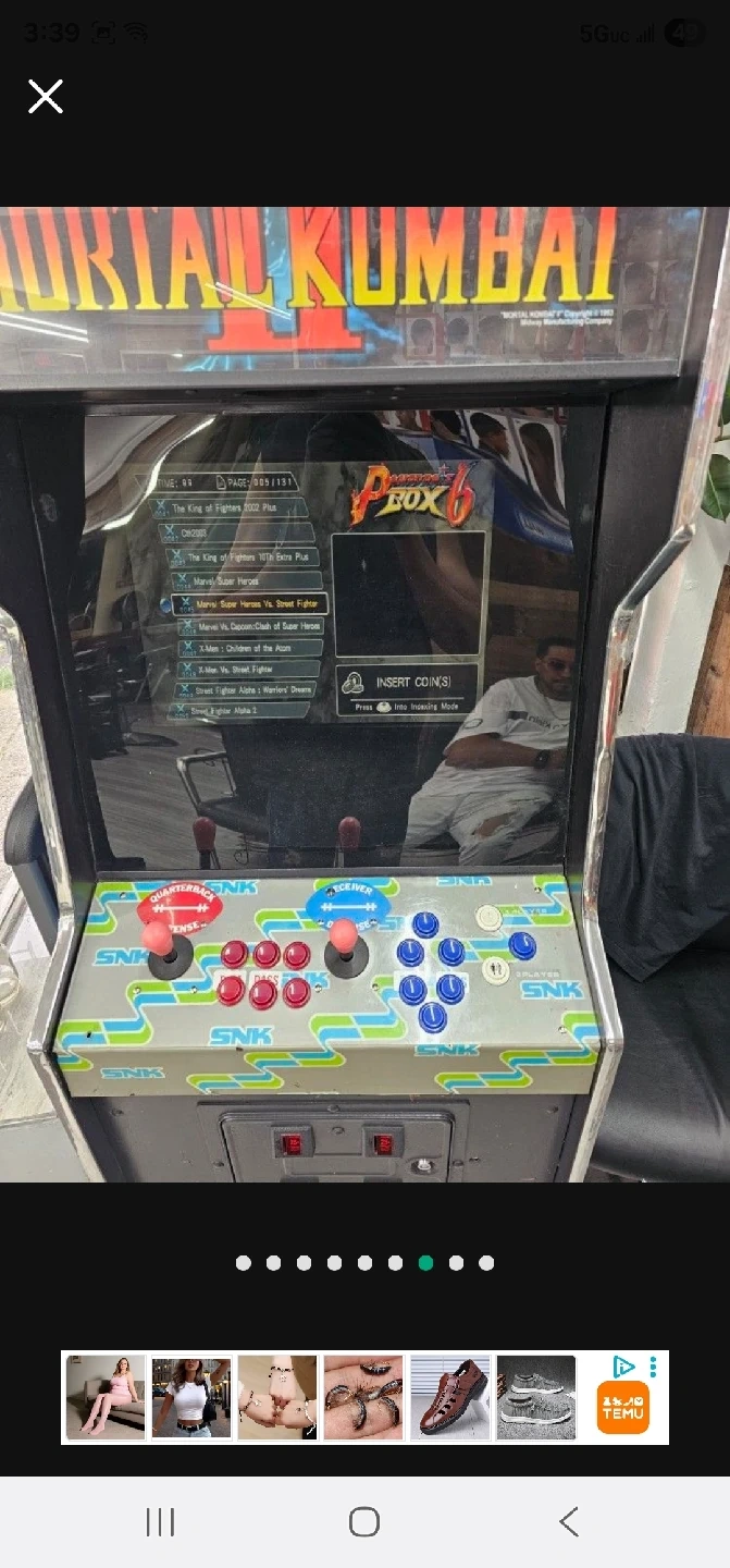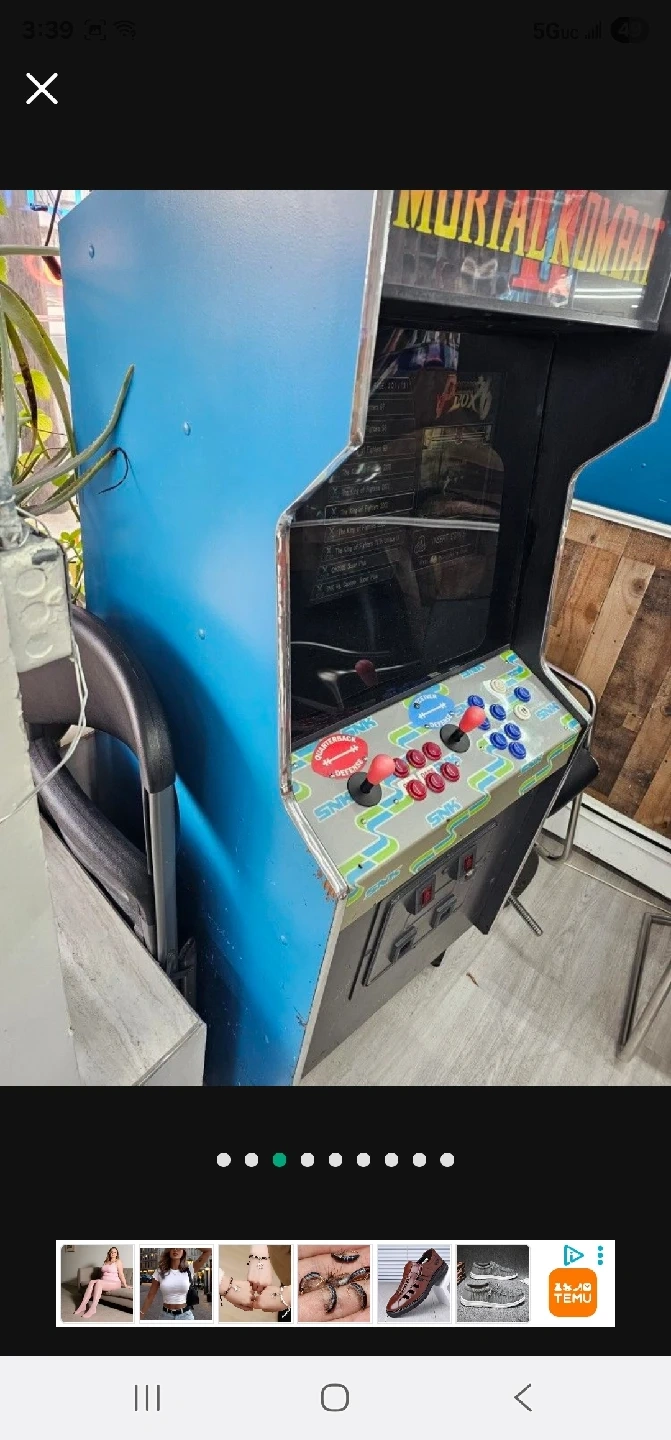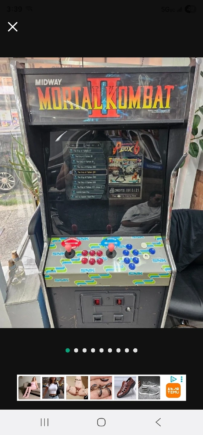 10Selling a Multigame arcade machine. It features a variety of games including Mortal Kombat and The King of Fighters. It's in used condition.