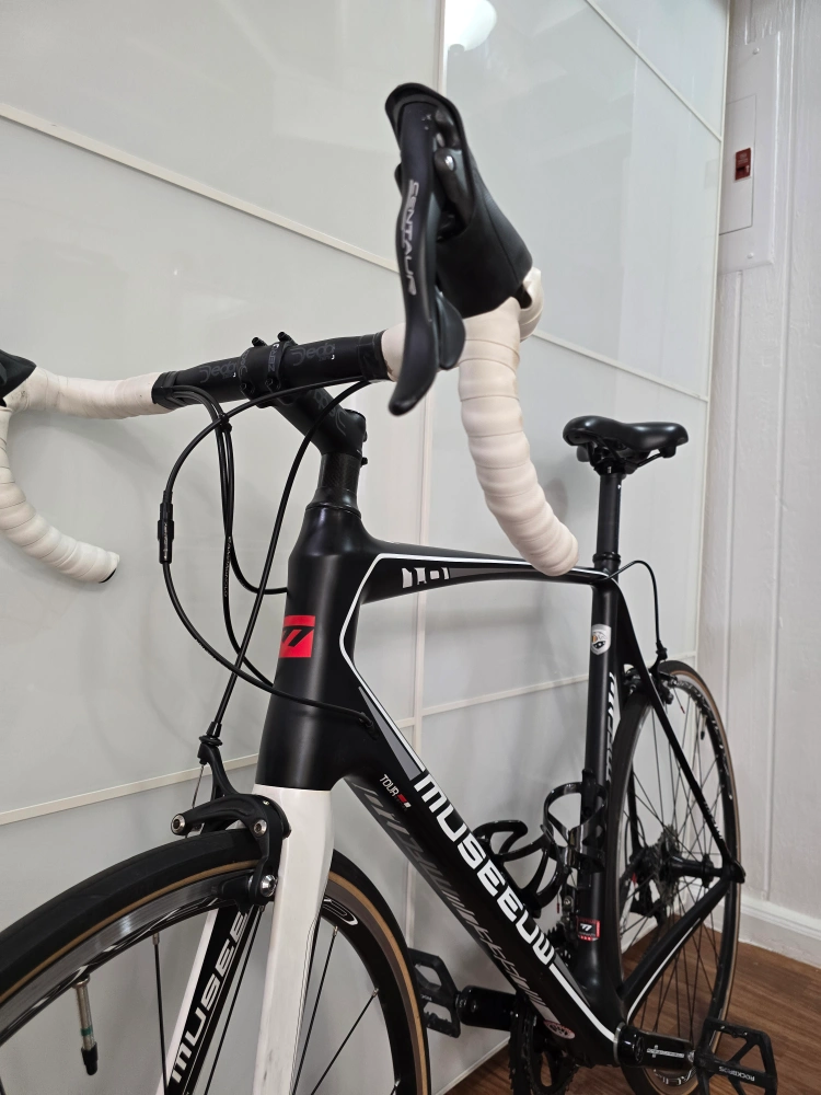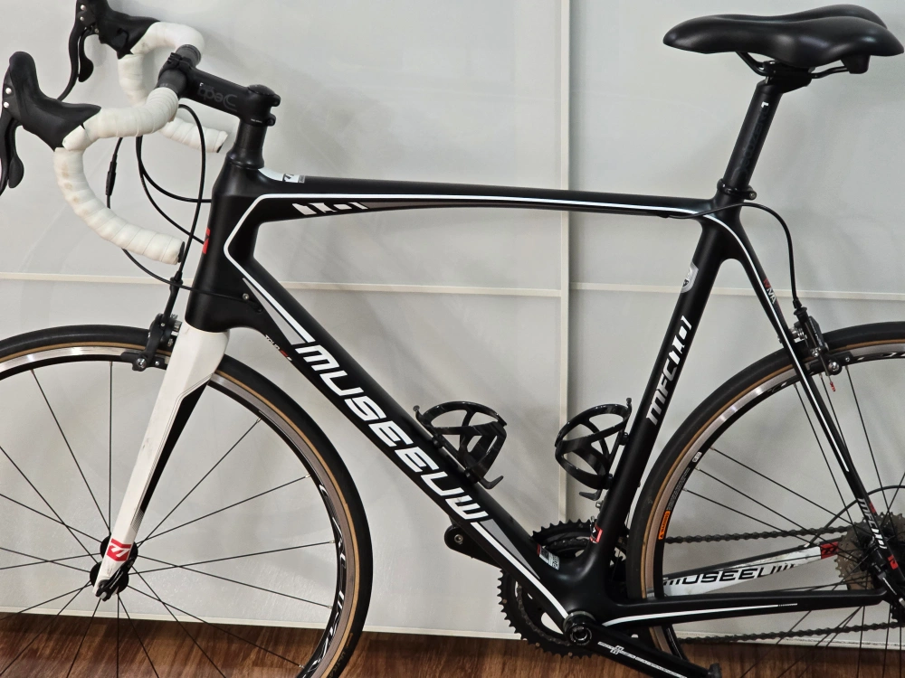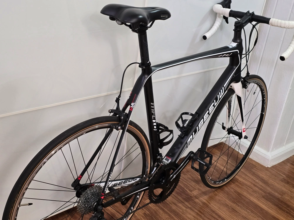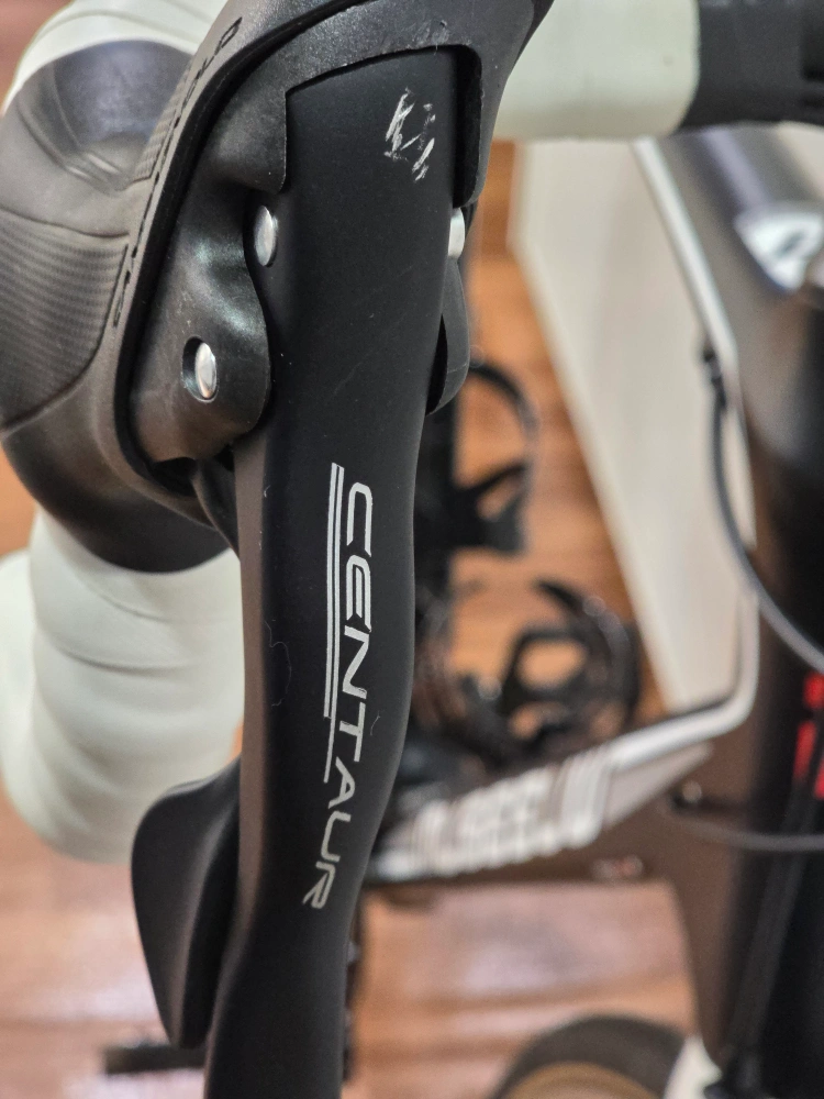 Carbon fiber road bike with campagnolo components. Comes with pedals