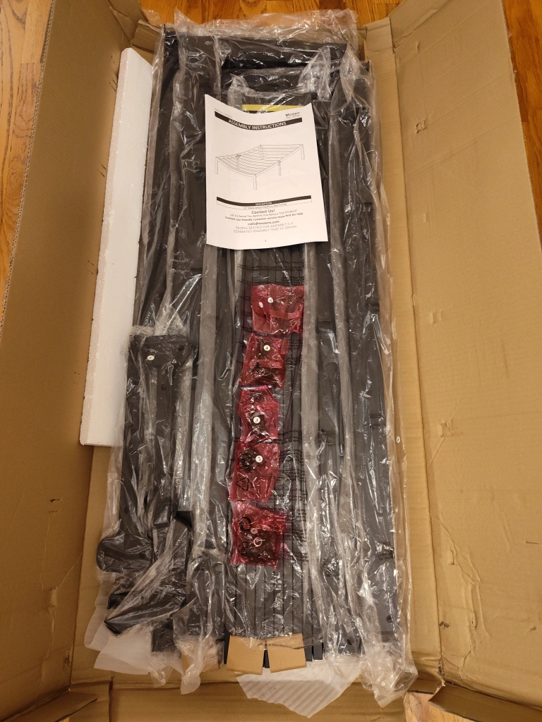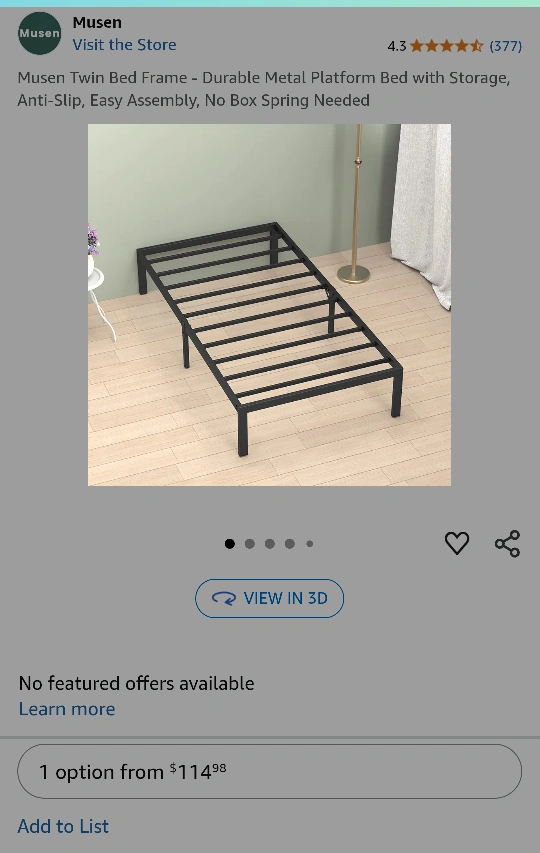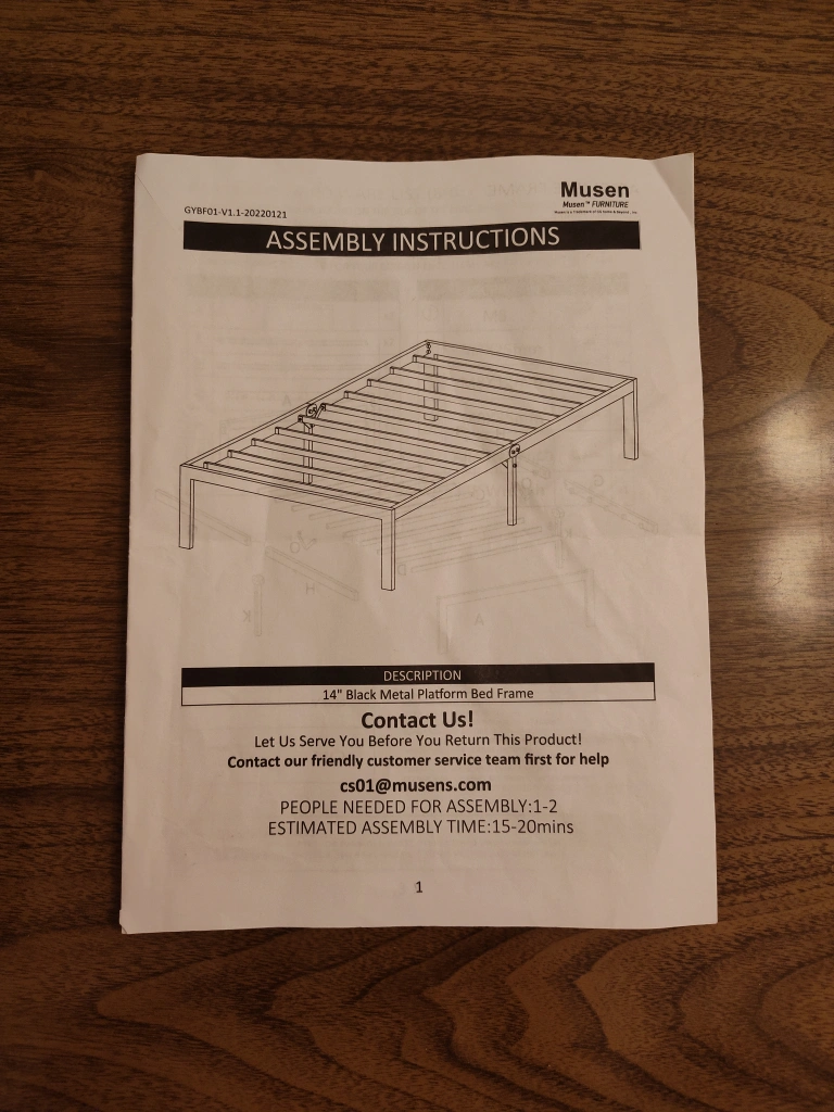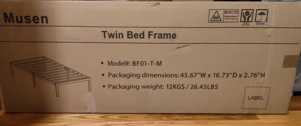 349Selling a 14-inch black metal platform Twin bed frame by Musen! This durable metal platform bed is easy to assemble and doesn't require a box spring. Perfect for adding storage space underneath your bed. Comes with the original box and assembly instructions included. It's an open box but frame has never been assembled or used. All screws and bolts are factory sealed in their original packaging.