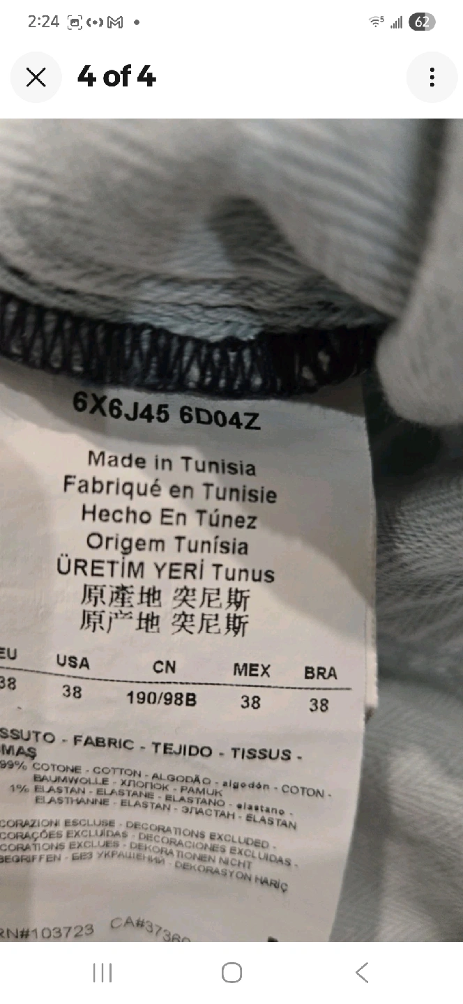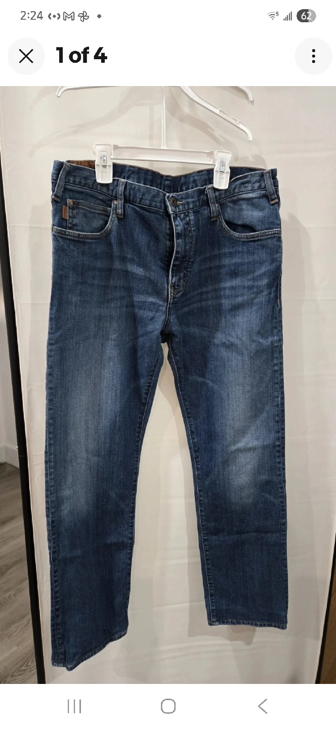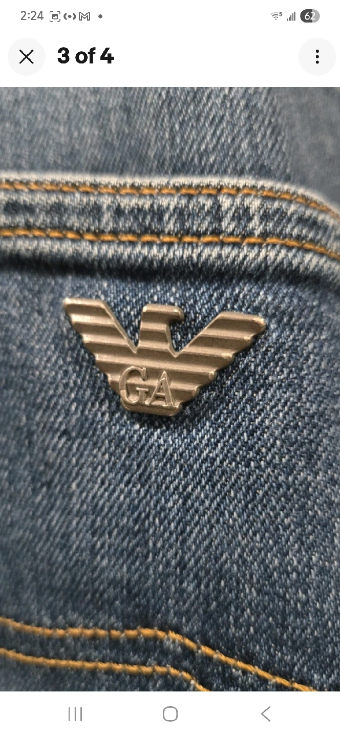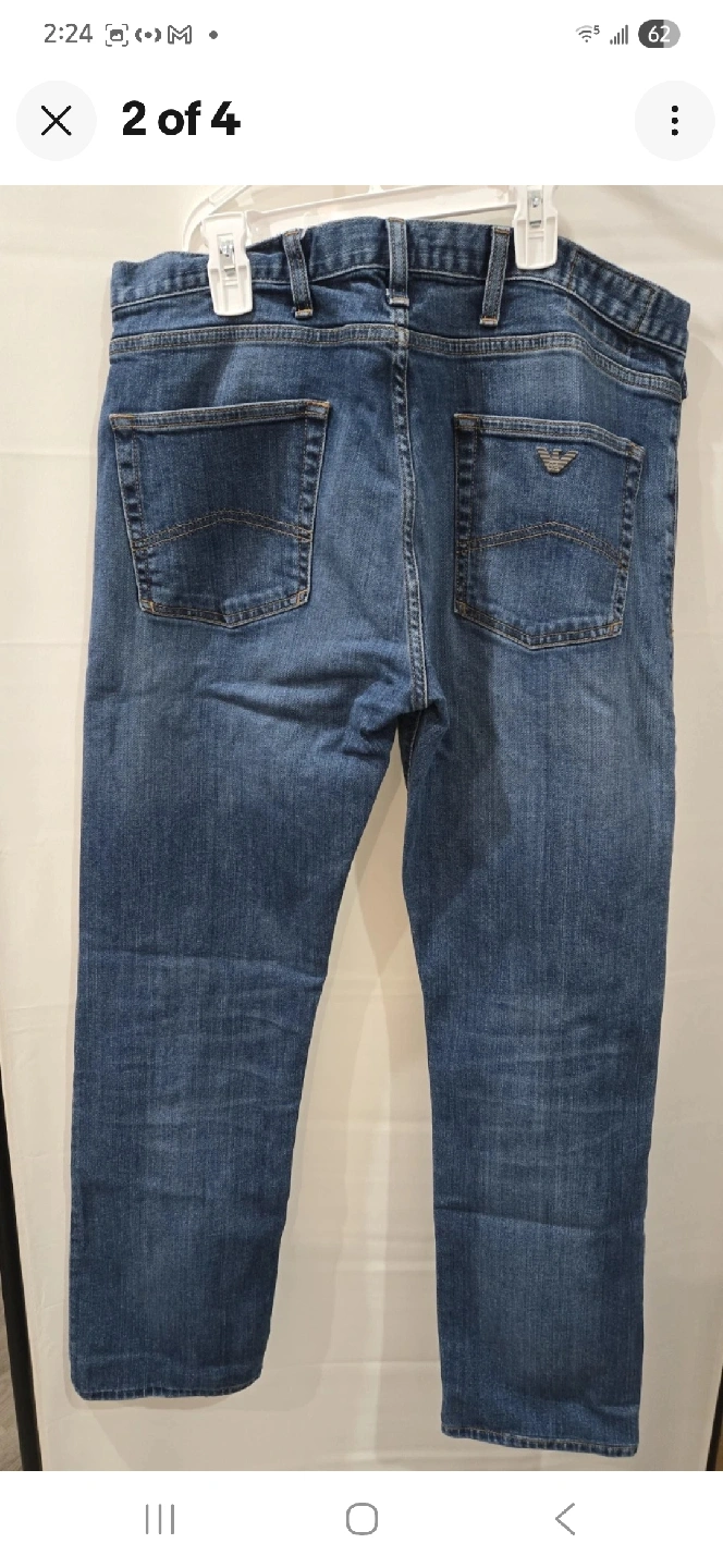 These are a pair of Armani jeans in size 38. They are made of 99% cotton and 1% elastane. They are in good condition and ready for a new home