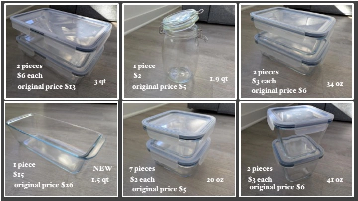 164MUST GO THIS WEEKEND! Selling a variety of IKEA 365+ glass food containers with plastic lids. Also a KORKEN glass jar and an unused glass Simax loaf pan. Pan is made in Europe and the dimensions are: 11 x 4.8 x 3". 3qt, 34oz and 41oz containers are sold. 2 of the 20oz containers left. There are no cracks or chips in the glass. Selling because we are moving overseas. If you need anything else please check out my other listings π
