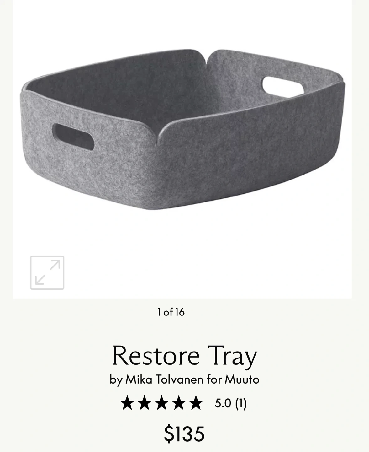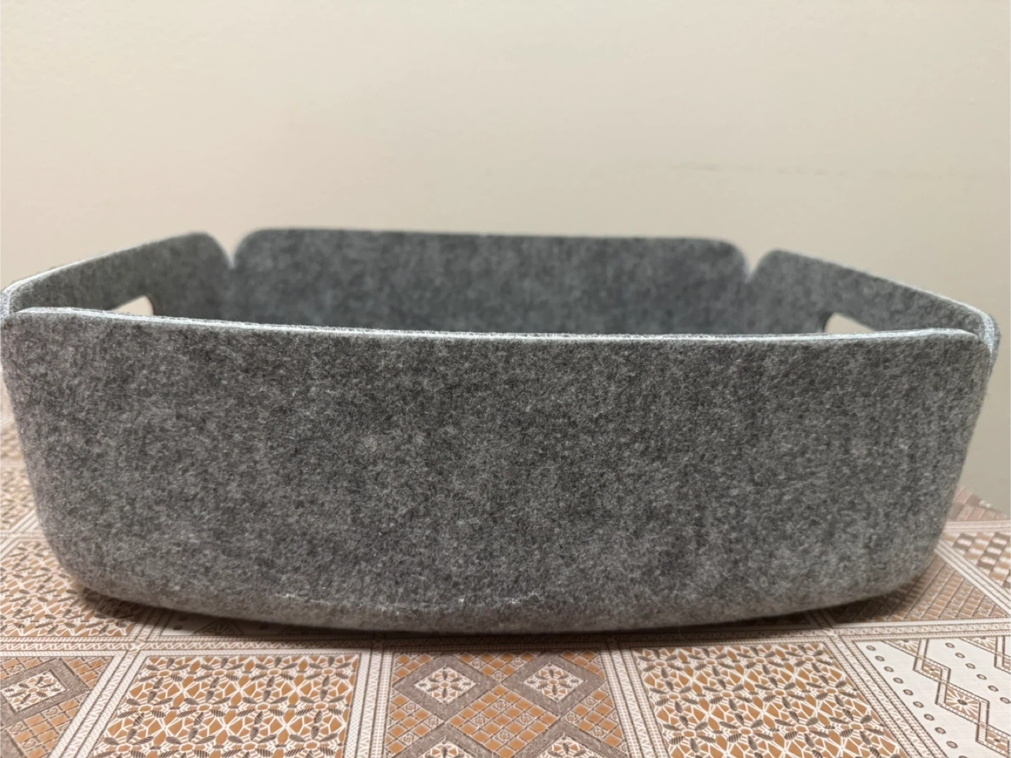 77Here's a Muuto Restore Tray, a stylish and functional felt storage basket! It's perfect for organizing items around the house. Originally bought for $135.
