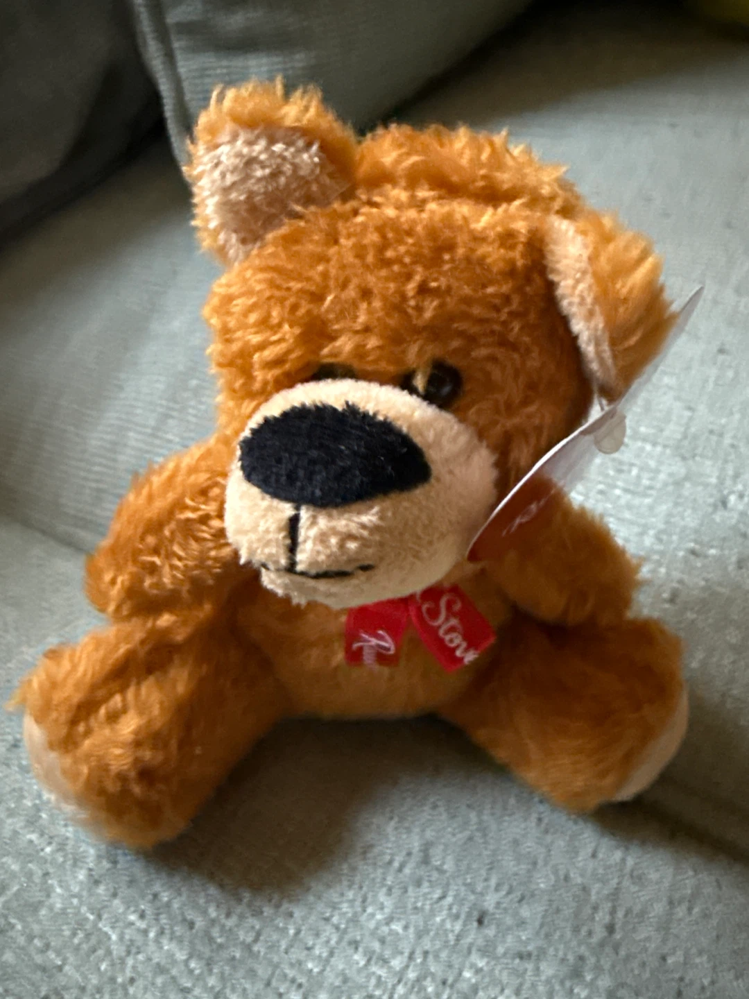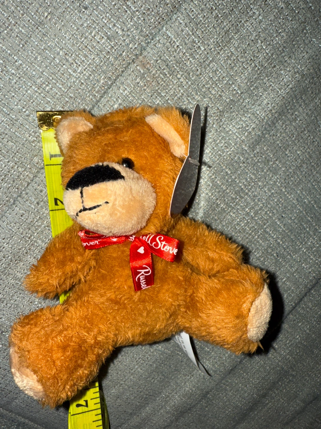 I’m giving away a small, fuzzy teddy bear designed and manufactured for Russell Stover Chocolates. It's made of polyester fibers and wears a red ribbon with the Russell Stover logo. It's a collectible item. Smoke free home.