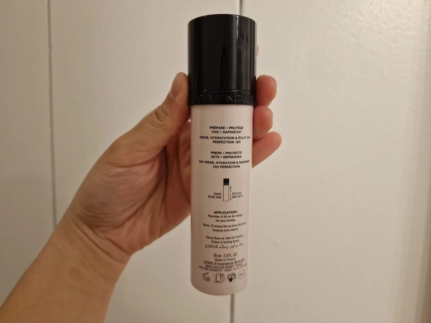 This Givenchy Prisme Libre mist preps, protects, and sets makeup for 24-hour wear. It provides hydration and a glowy finish. Contains SPF 45 protection. Made in France. 70 ml / 2.3 fl. oz.