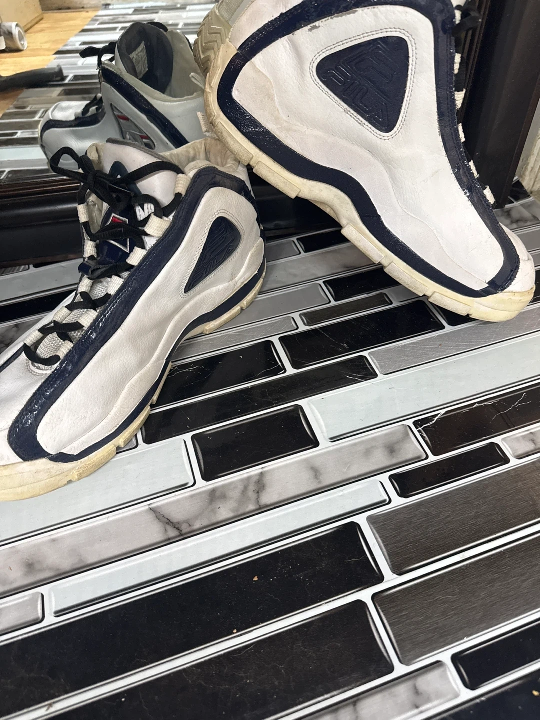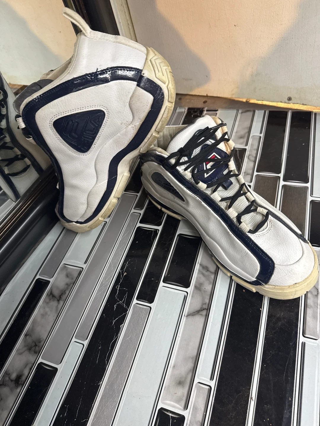 Selling a pair of Fila Grant Hill 2 sneakers. They are a US size 11.5. The shoes show some signs of slight wear, but are still in good condition for everyday use and fun!