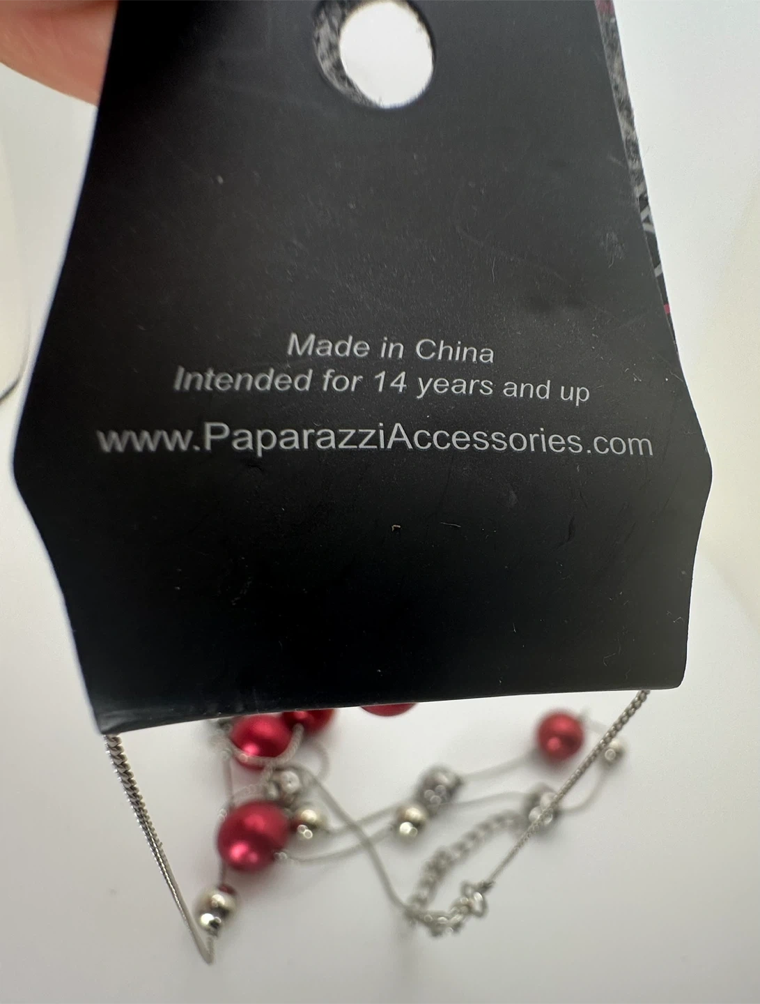 Charming Paparazzi Accessories red pearl and silver bead station necklace with matching earrings. This festive set features a long necklace with alternating red pearls and silver-tone beads, paired with coordinating drop earrings. Perfect for holiday (Christmas) accents or adding a pop of color to any outfit. Appears to be new and unworn.