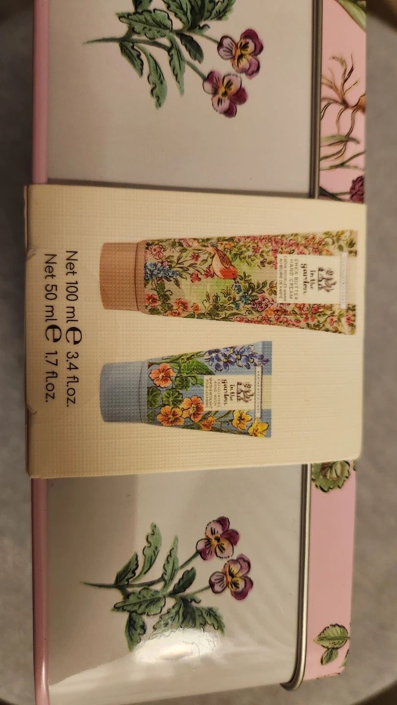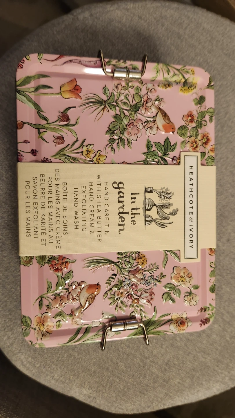Selling a Heathcote & Ivory In the Garden Hand Care Tin set! The tin includes hand cream and exfoliating hand wash. The hand cream is 50ml and the exfoliating hand wash is 100ml. Such a cute set!