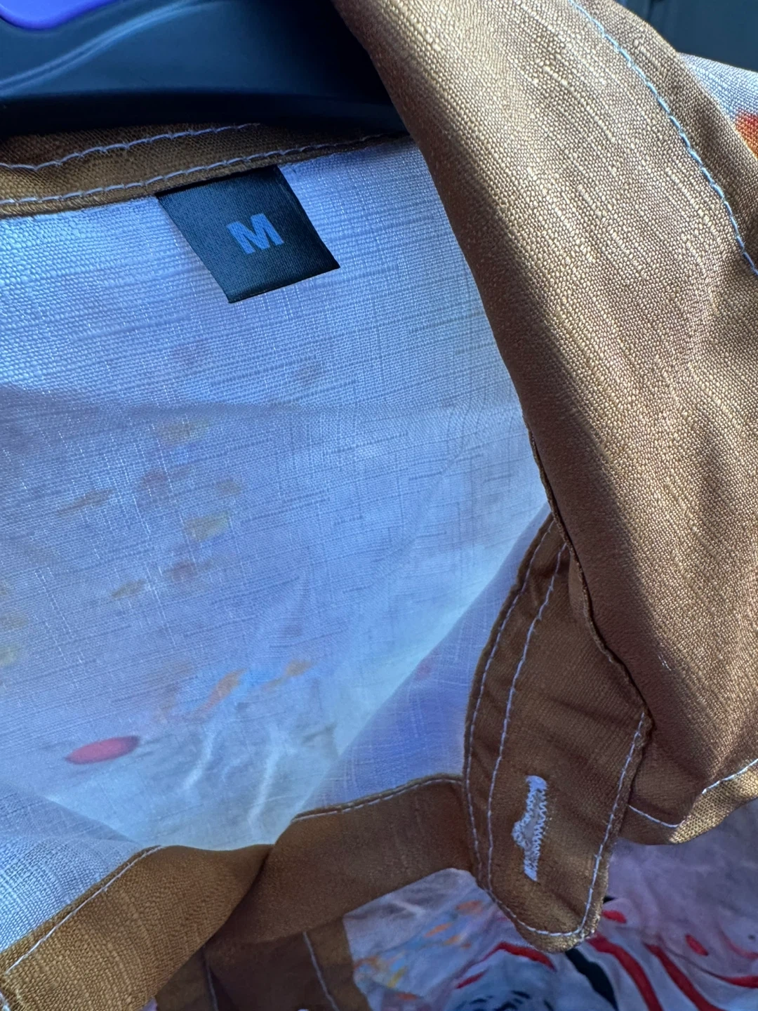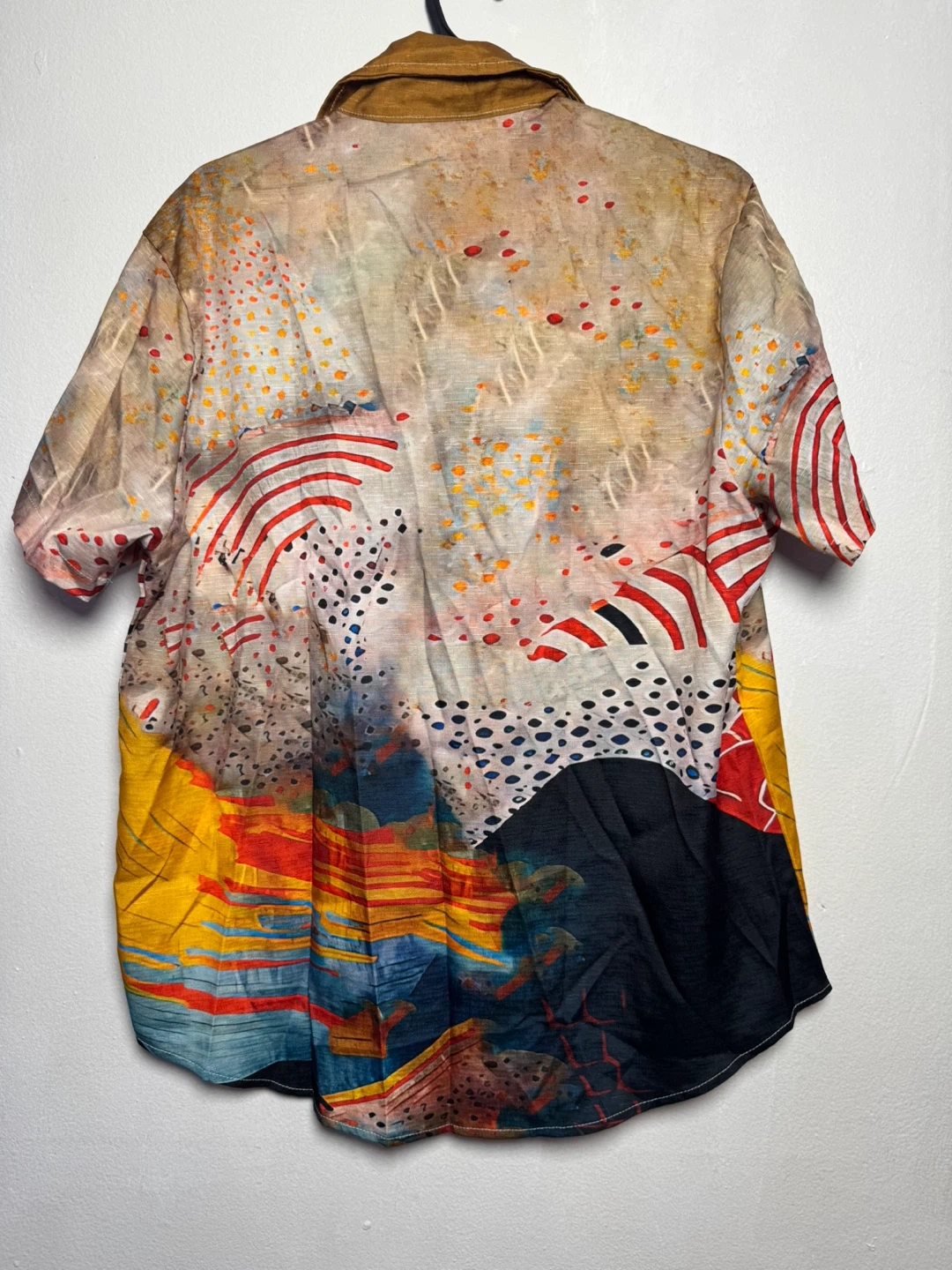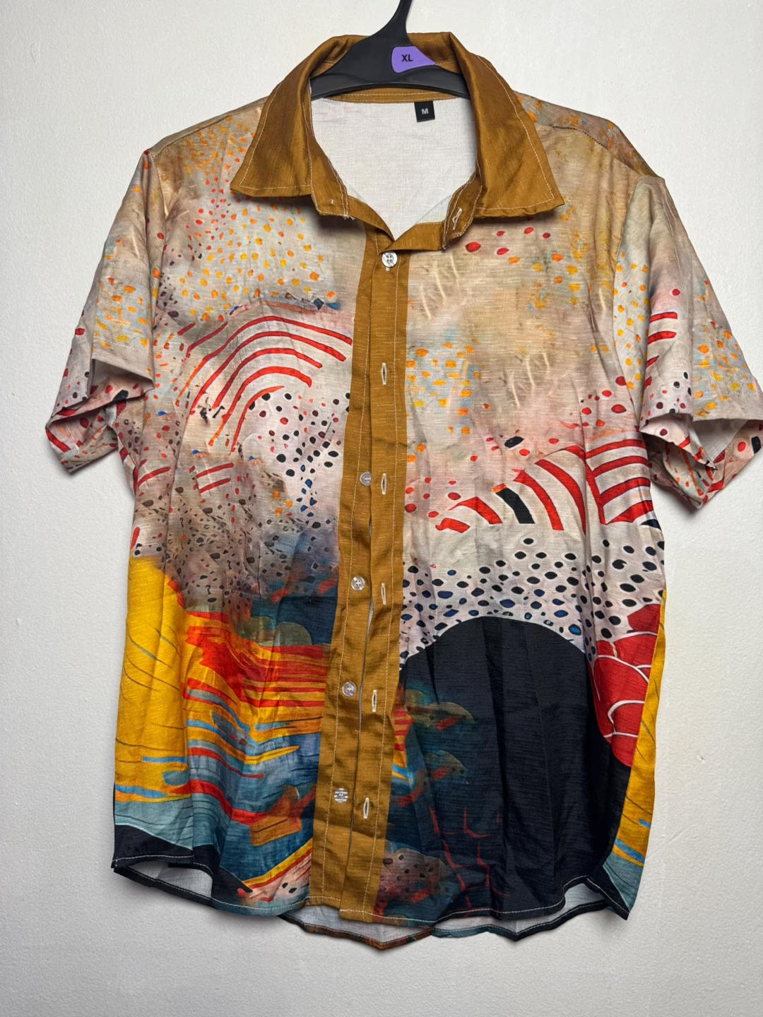 Cool short sleeve button-up shirt with an abstract art print. Size is medium.
