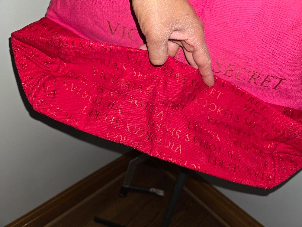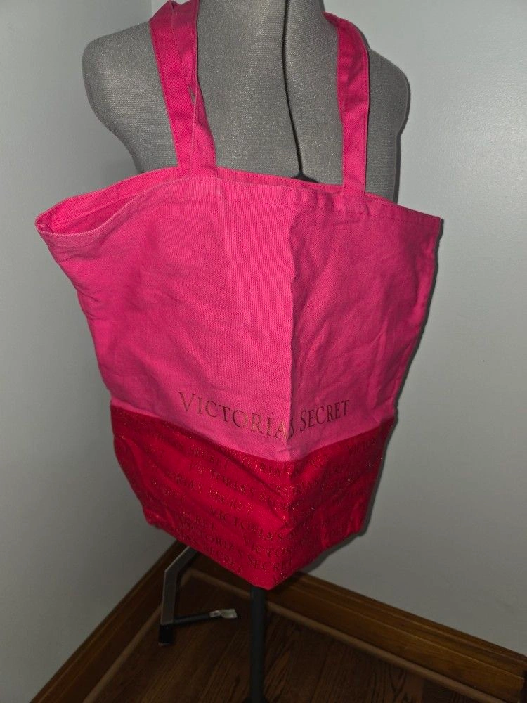 Victorias Secret Canvas Bag Red Pink Metallic Tote
