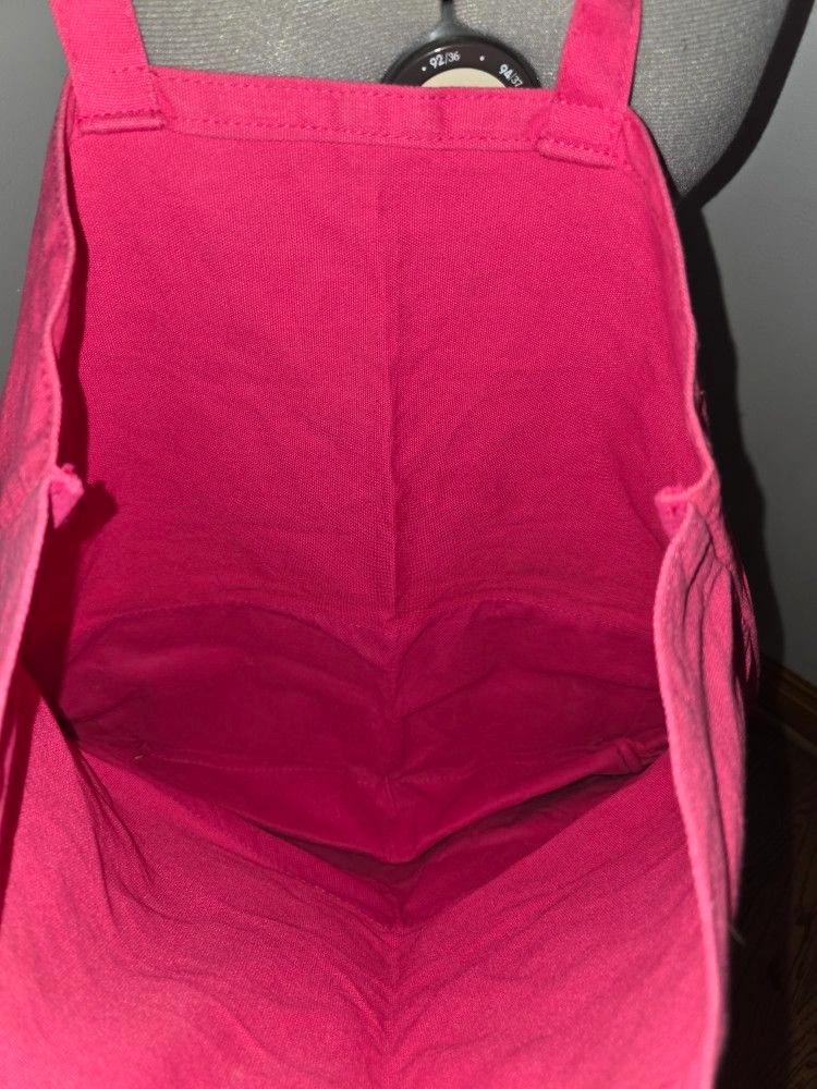 VICTORIA'S SECRET PINK RED CANVAS LOGO TOTE SHOPPER BEACHBOOK BAG PURSE 18". Measures 18" wide and 18" tall.