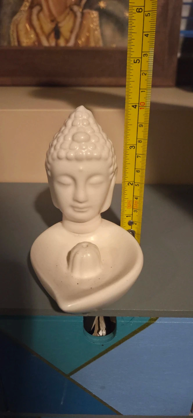This is a white Buddha head figurine. It measures approximately 5 inches in height. Perfect for adding a touch of serenity to your space