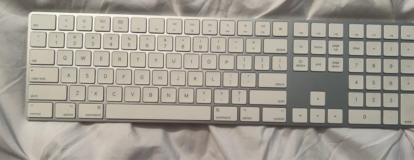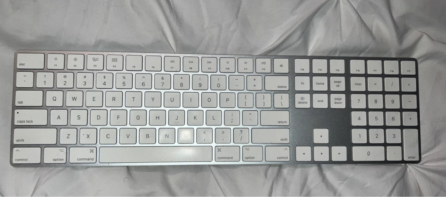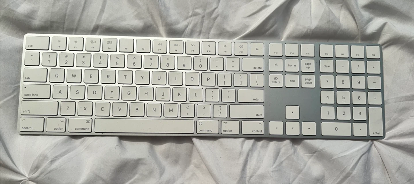 Apple Magic Keyboard with Numeric Keypad in silver. It's in great condition and ready for a new user! This keyboard is lightweight and portable, making it easy to take with you wherever you go