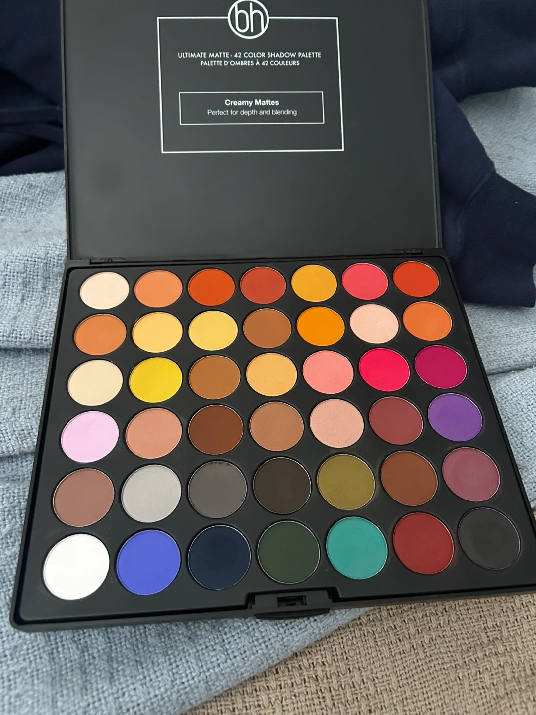 BH Cosmetics Ultimate Matte eyeshadow palette with 42 shades. Creamy mattes perfect for depth and blending. Excellent quality similar to the James Charles palette!