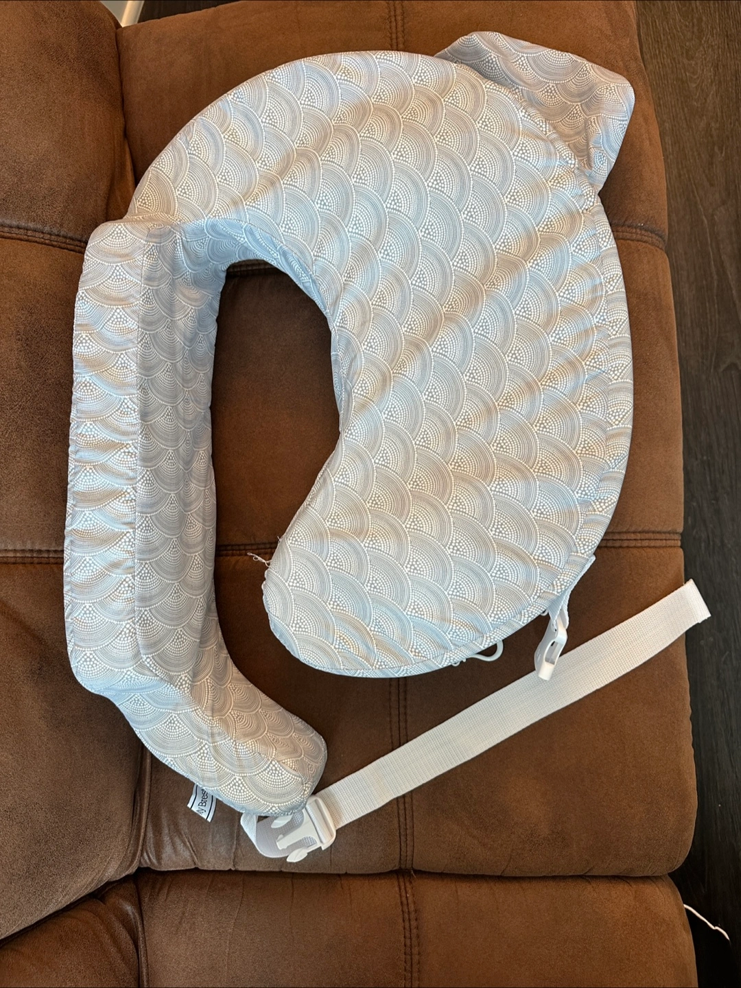 My Best Friend nursing pillow. Gray and white pattern. Includes a strap.