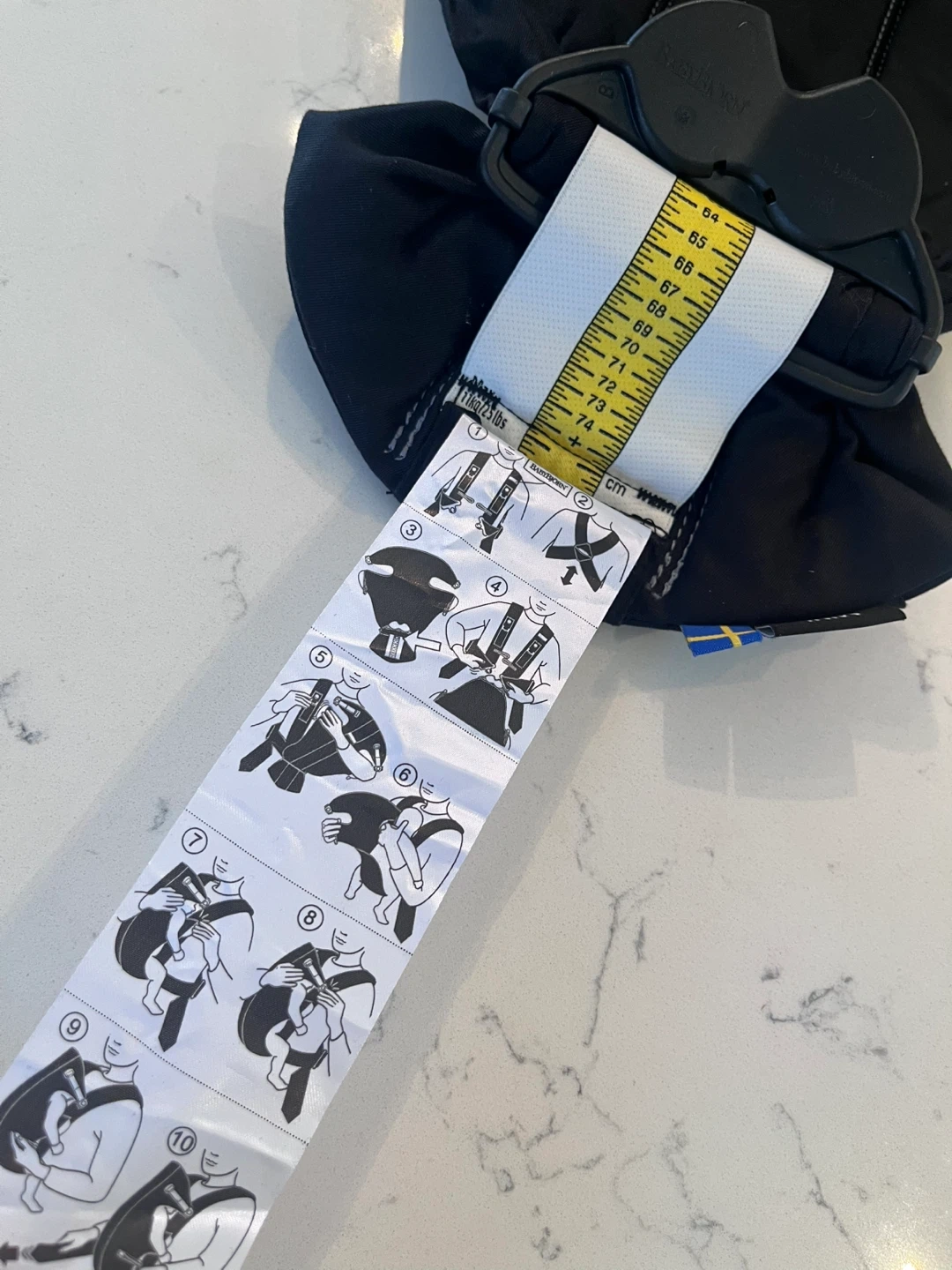 Appropriate for smaller babies up to 5kg or 10lbs. Can adjust to length of baby. Wearing instructions attached to bottom of carrier. Straps adjustable to fit all sized parents.