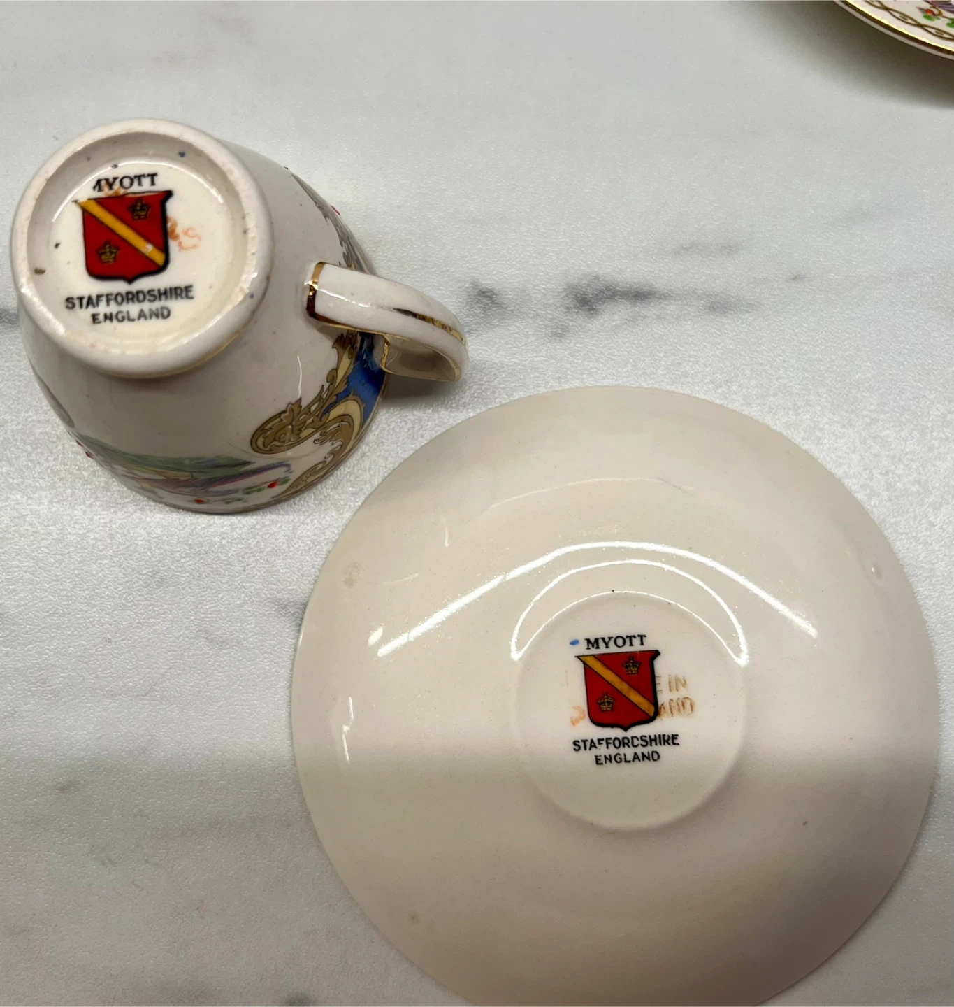 606 cups, 4 saucers Myott Staffordshire “Blue Peacock” pattern. They feature a beautiful bird design with gold trim. Perfect for tea time or adding a touch of vintage charm to your collection