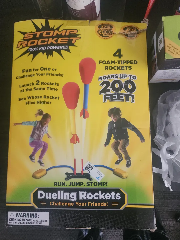 Have fun with the Stomp Rocket Dueling Rockets! It's 100% kid powered and launches 2 rockets at the same time. See whose rocket flies higher! The 4 foam-tipped rockets soar up to 200 feet! Run, jump, stomp! Pickup near Harlem and Devon, cash only