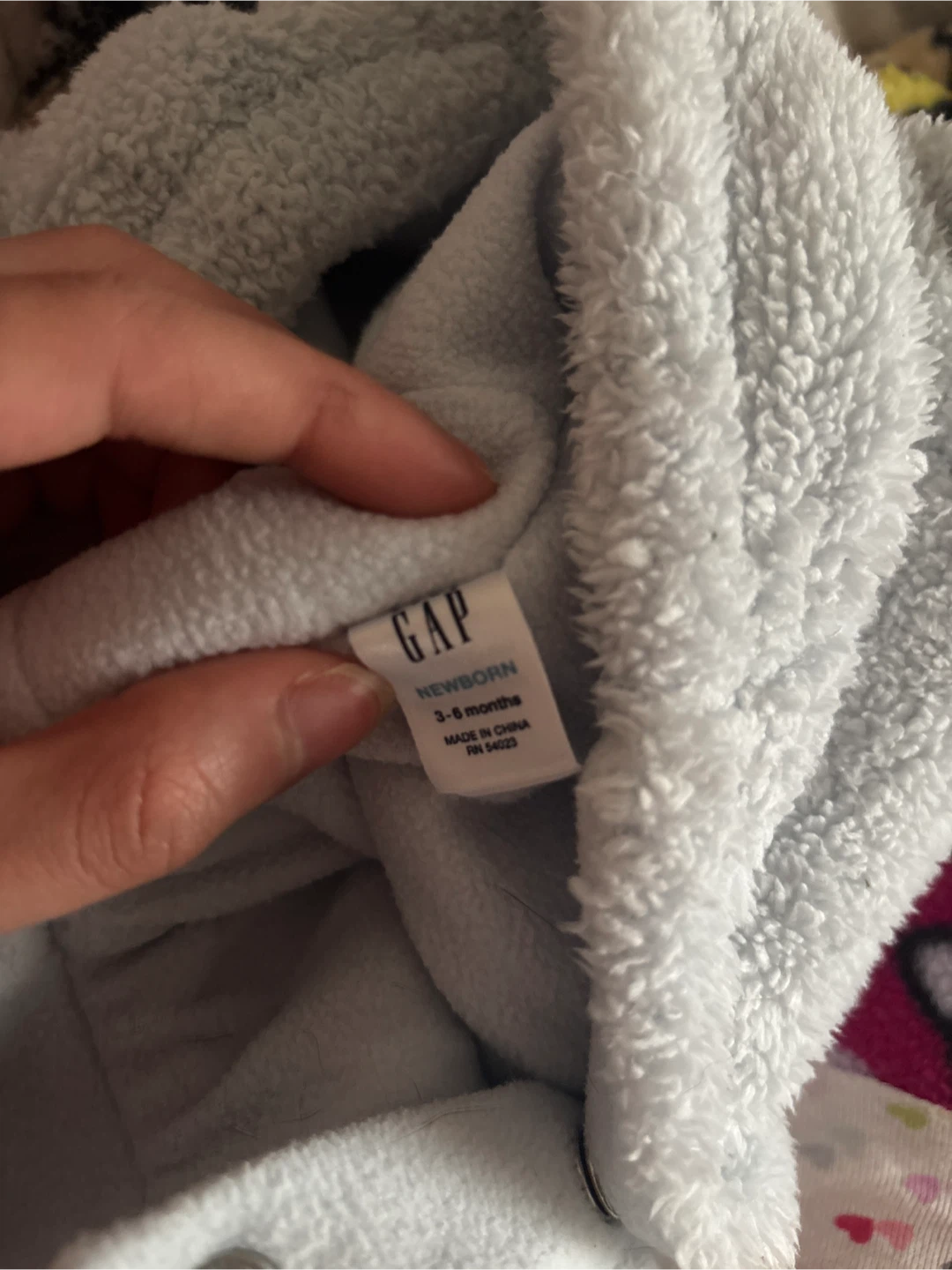 Here's a cozy, newborn-sized blue fleece jacket from GAP! It's super soft and perfect for keeping your little one warm. This jacket is in great condition and ready for a new baby to enjoy