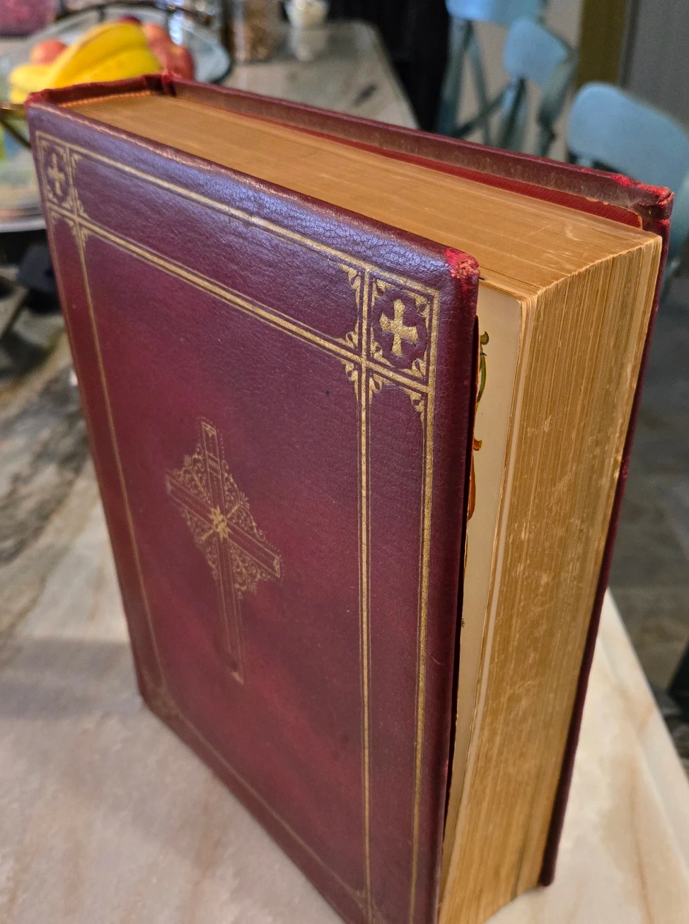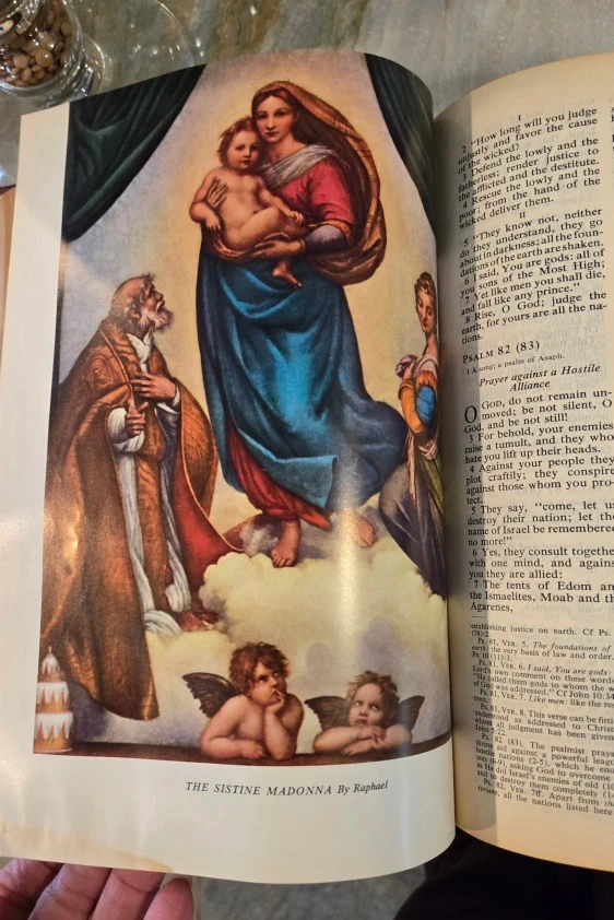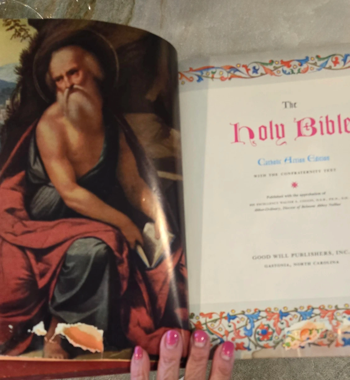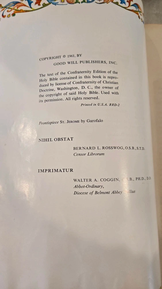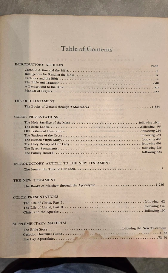 Large/heavy vintage Catholic Bible with original bookmark.