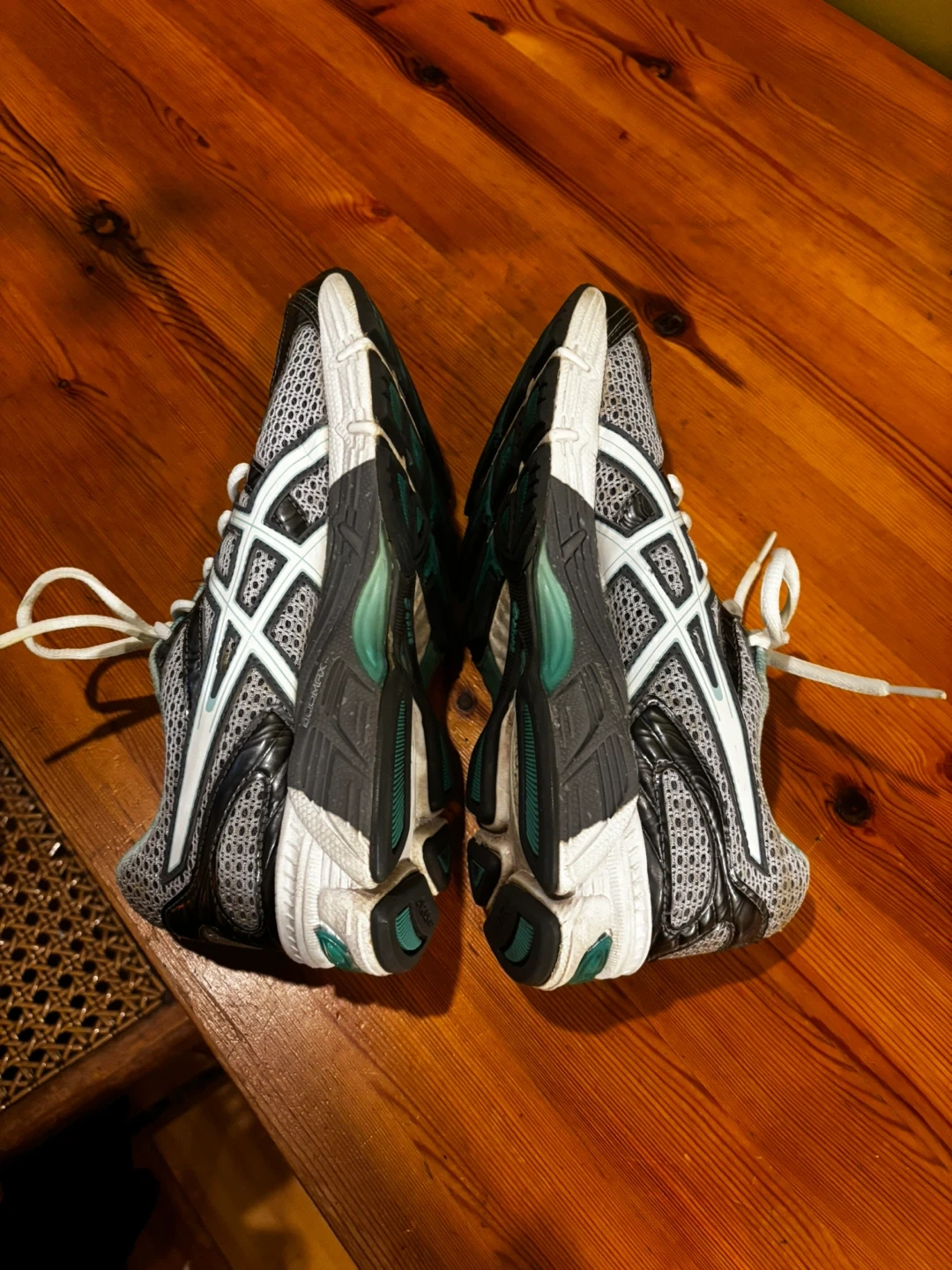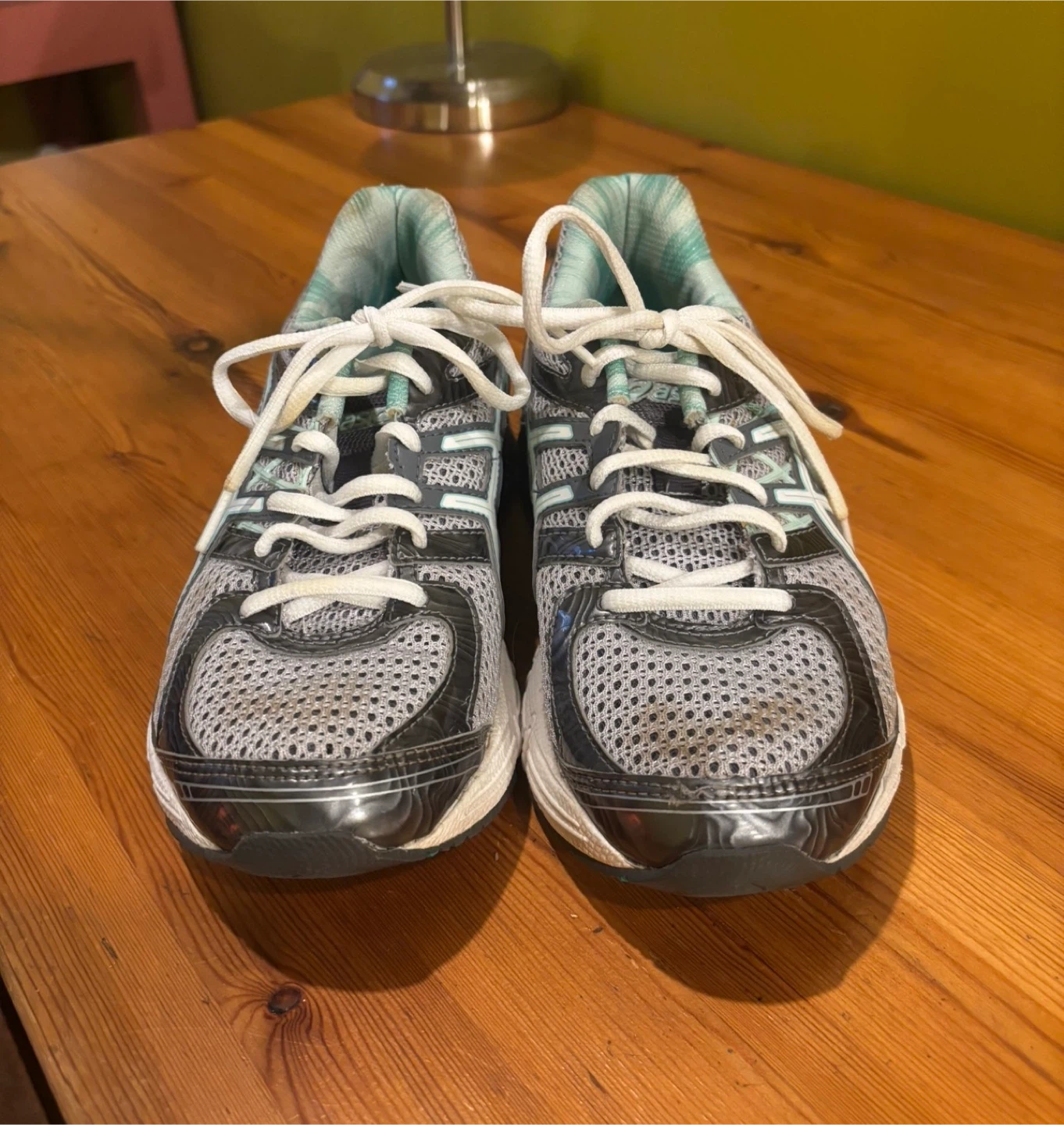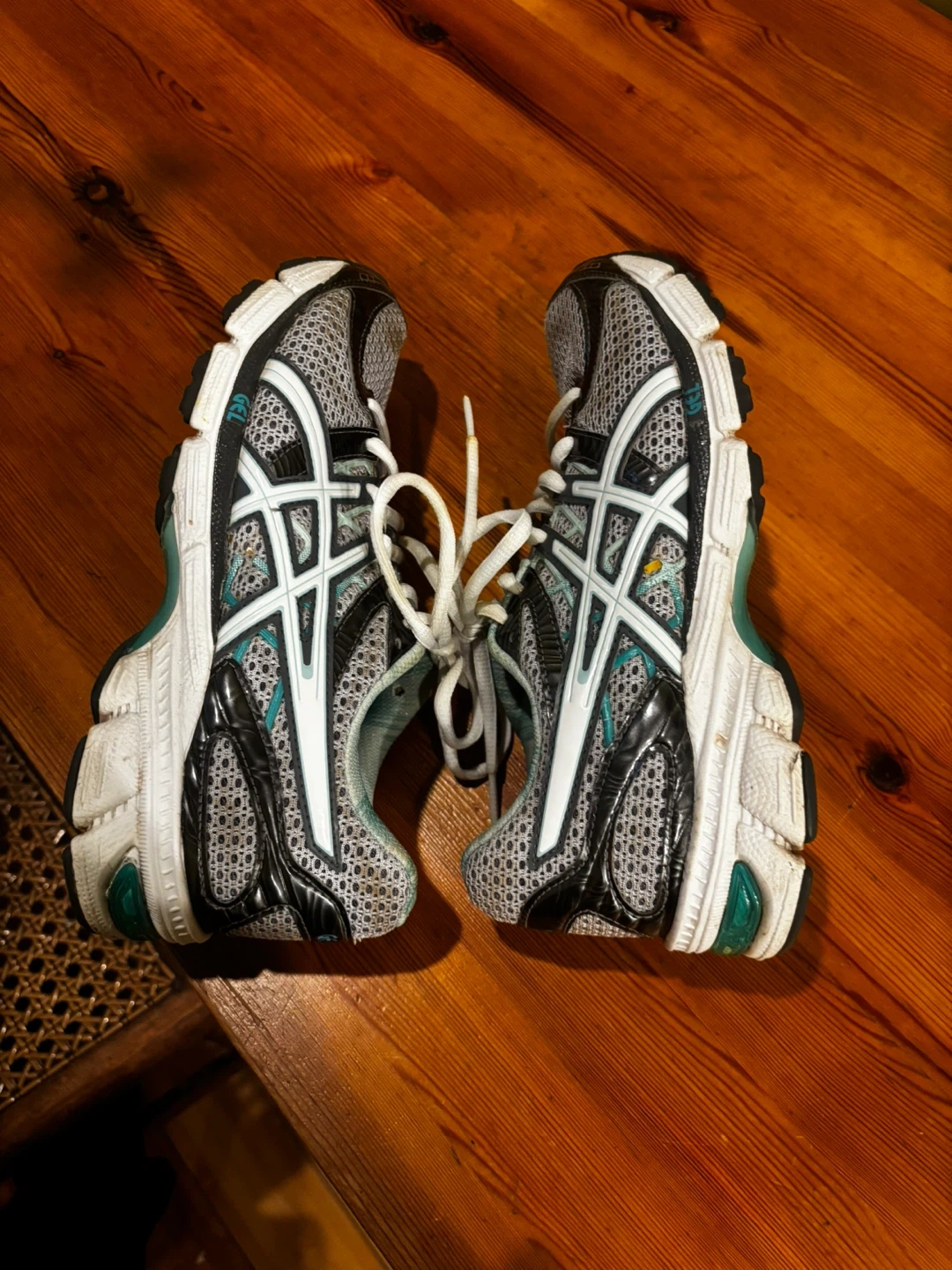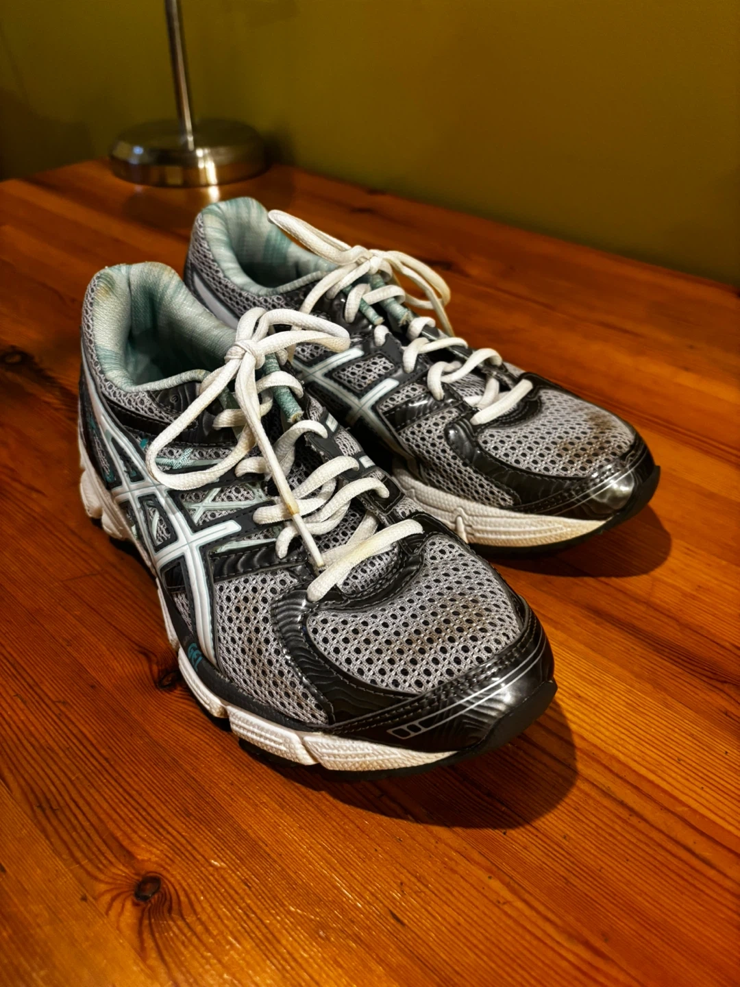These ASICS GEL running shoes are designed for comfort and performance. They feature a breathable mesh upper and a supportive sole with GEL cushioning. White laces tie them securely.