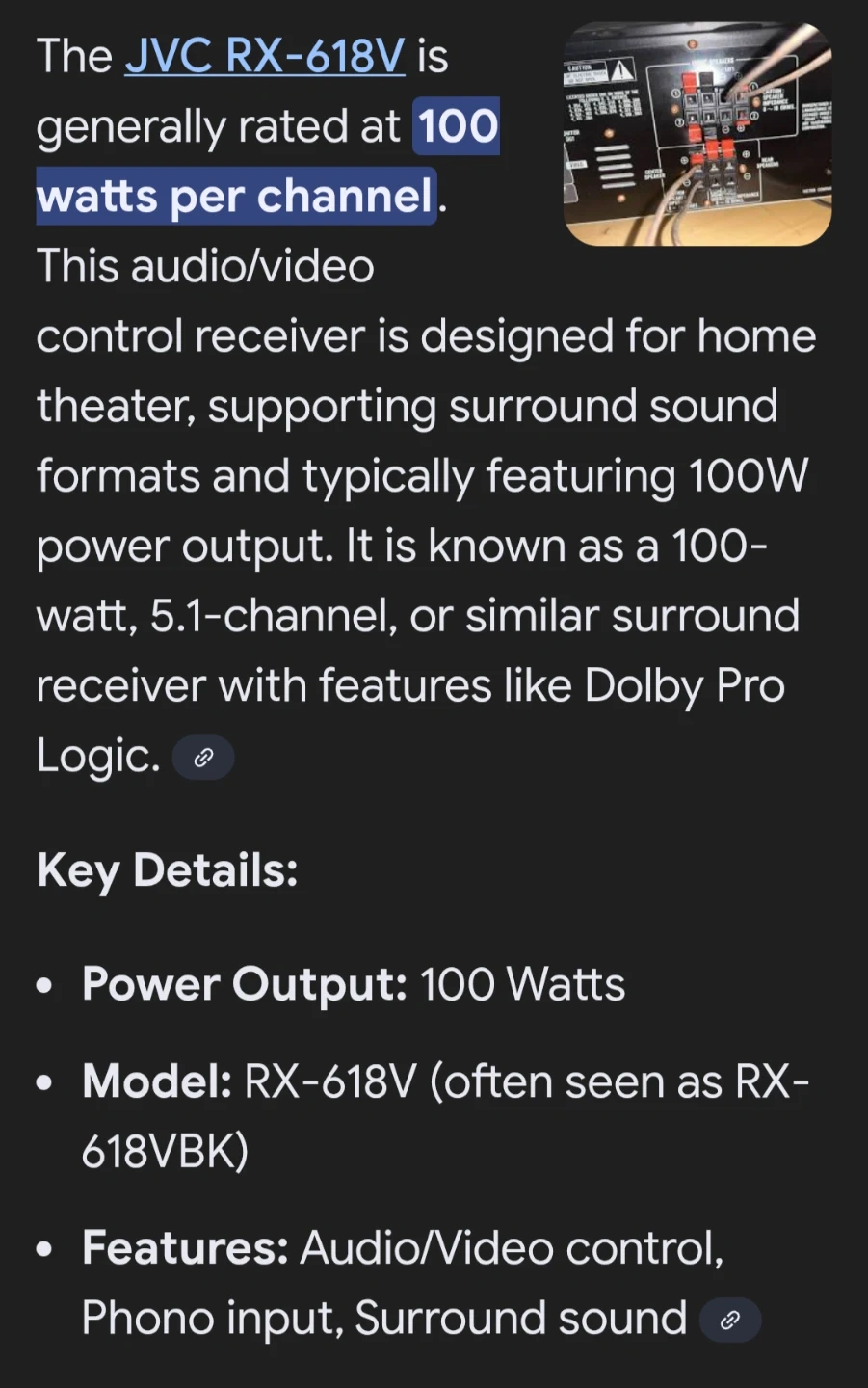 Selling a JVC RX-618V Audio/Video Control Receiver. It's in good working condition and ready to enhance your audio experience. I'll throw in a couple of the speakers that are shown also