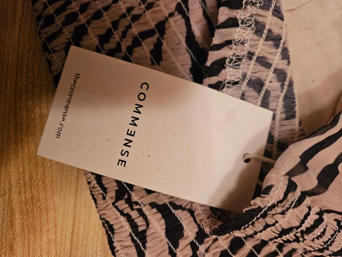Cute Commense dress with a zebra print. It has long sleeves and a drawstring neckline. Perfect for a night out!
