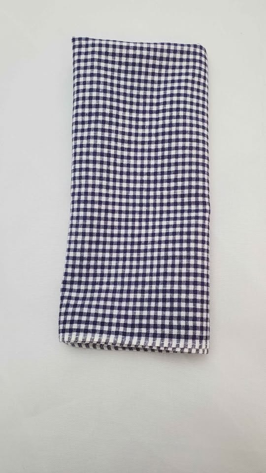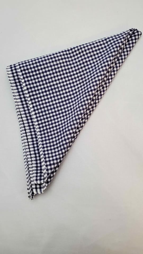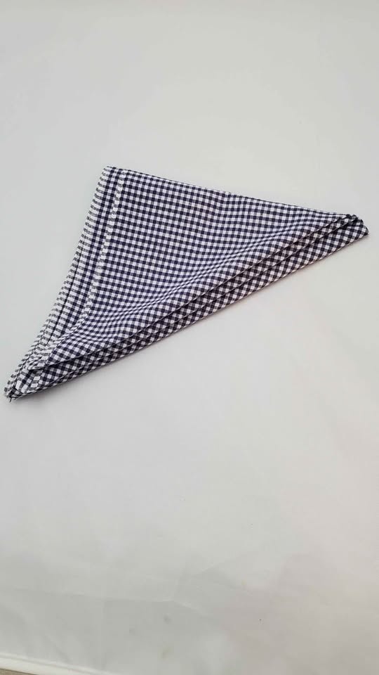 Navy and White Gingham Cotton Handkerchief, Pocket Square