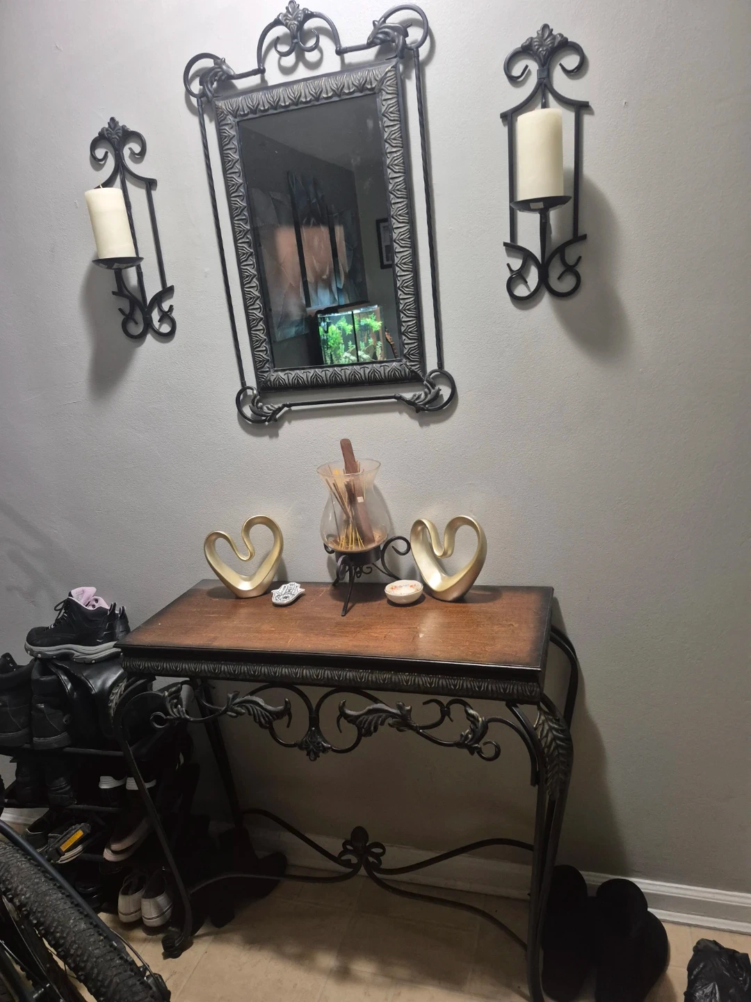 Console Table with Ornate Metal Frame