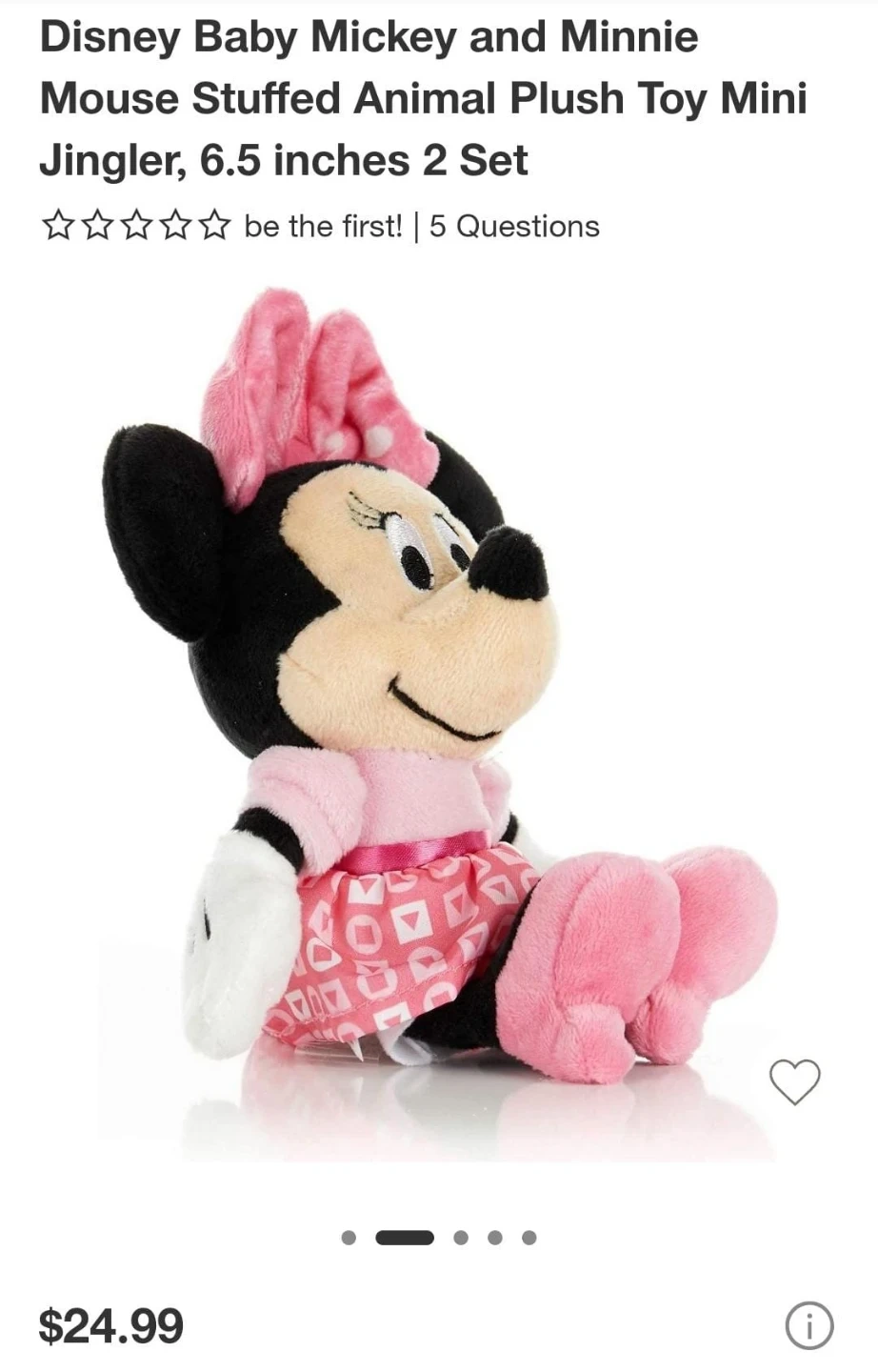 Disney Baby Minnie Mouse Stuffed Animal Plush Toy Mini Jingle