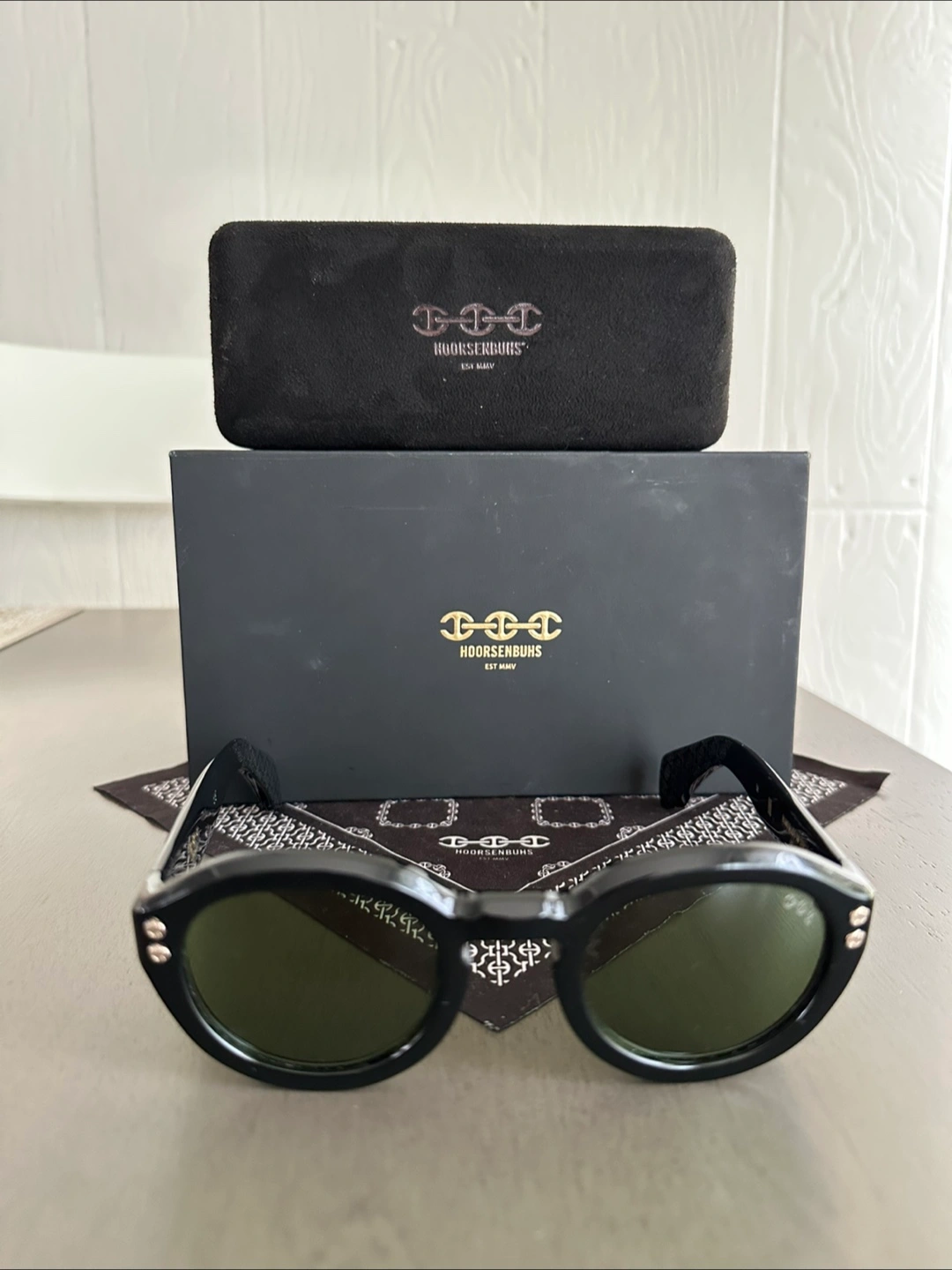 HOORSENBUHS Sunglasses,Black with 24K Gold Trim