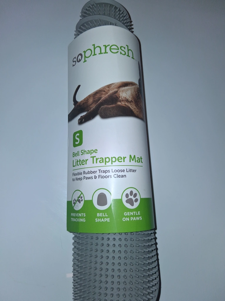Selling a Sophresh Bell Shape Litter Trapper Mat in size S! It's designed with flexible rubber to trap loose litter, helping to keep your floors clean. The bell shape is gentle on paws and prevents tracking. Perfect for any cat owner!