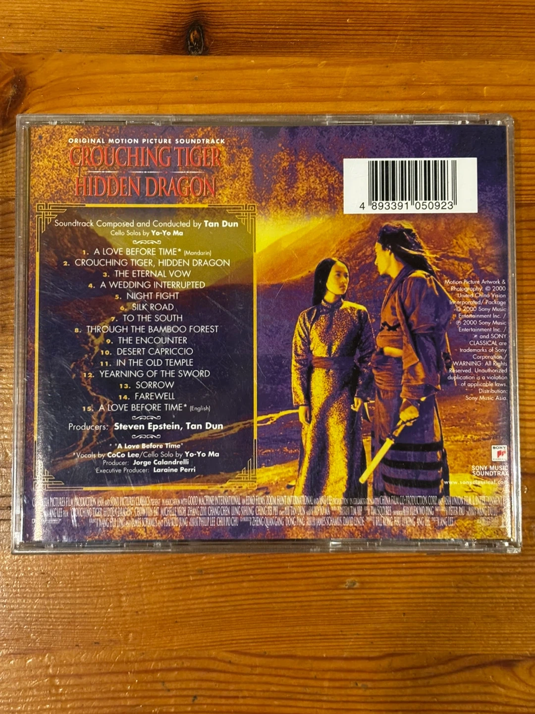 Soundtrack composed by Tan Dun. Features Coco Lee and Yo-Yo Ma. Includes 15 tracks from the film. A compilation of orchestral and vocal pieces. Pls see the photos for details.