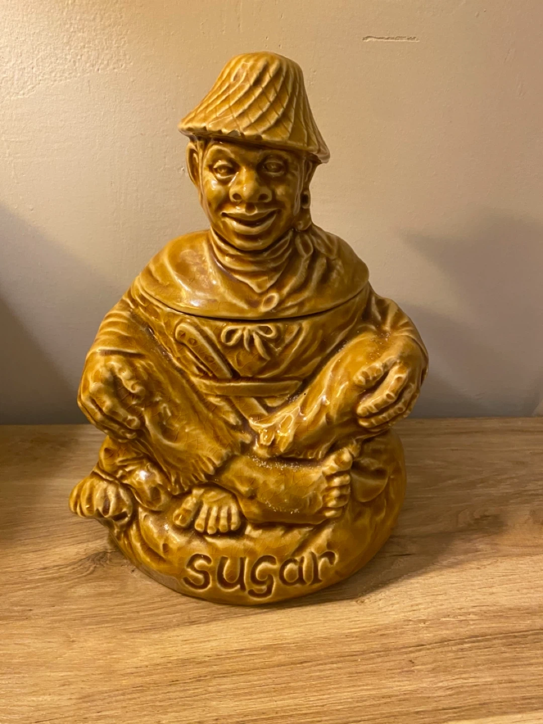 Selling a vintage shaped sugar jar. It's a unique piece with the word 'SUGAR' inscribed on the base. Great for adding a touch of character to your kitchen! James Sadlers around 1960/70s