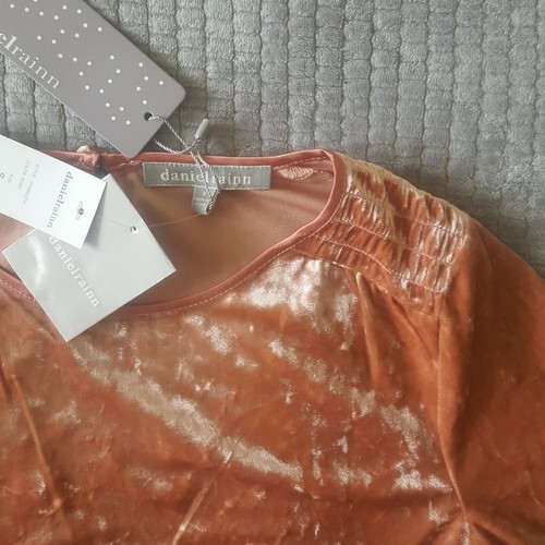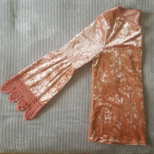 Daniel Rainn Women Rose Velvet Flared Long Sleeve Blouse Crochet Trim Size S. Condition is New with tags. Feel free to message if you have any questions!