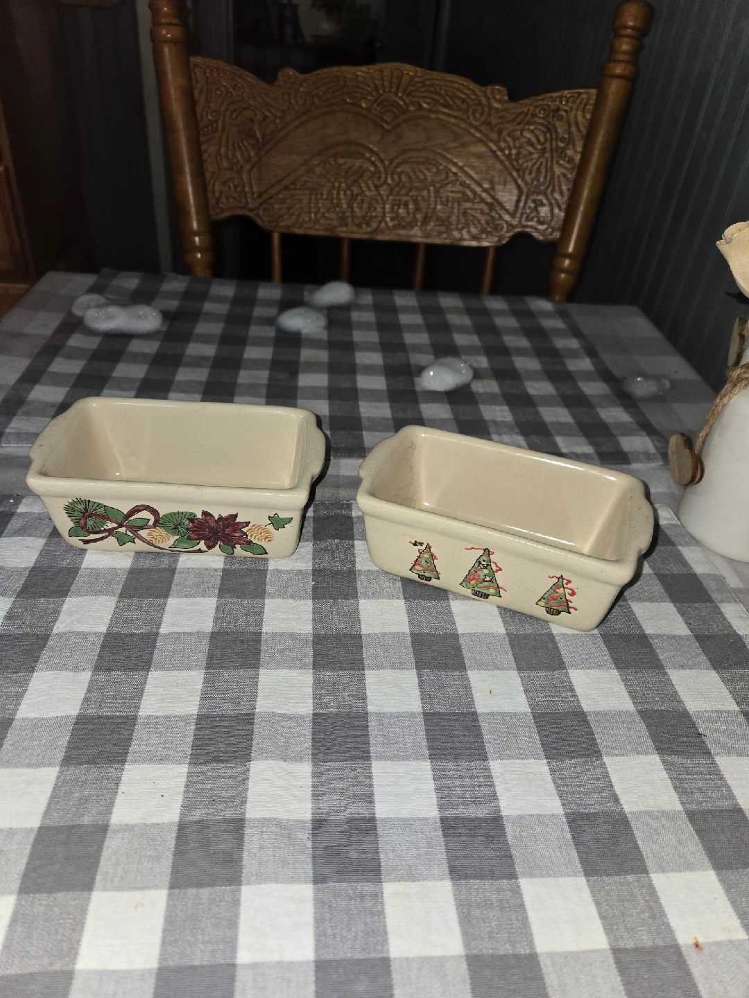 25Selling a set of two Nantucket mini loaf pans, perfect for holiday baking! They are dishwasher and microwave oven safe. One pan has a Christmas tree design, and the other has a poinsettia and pinecone design. Great for festive treats! Pick up in the Town of Newburgh NY only OBO