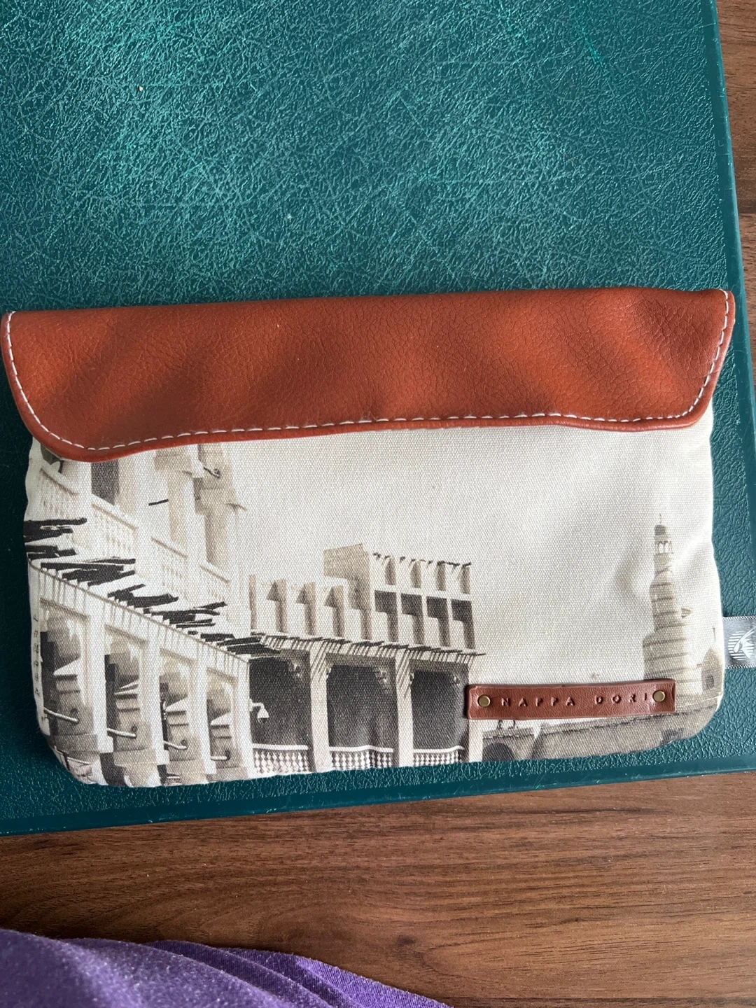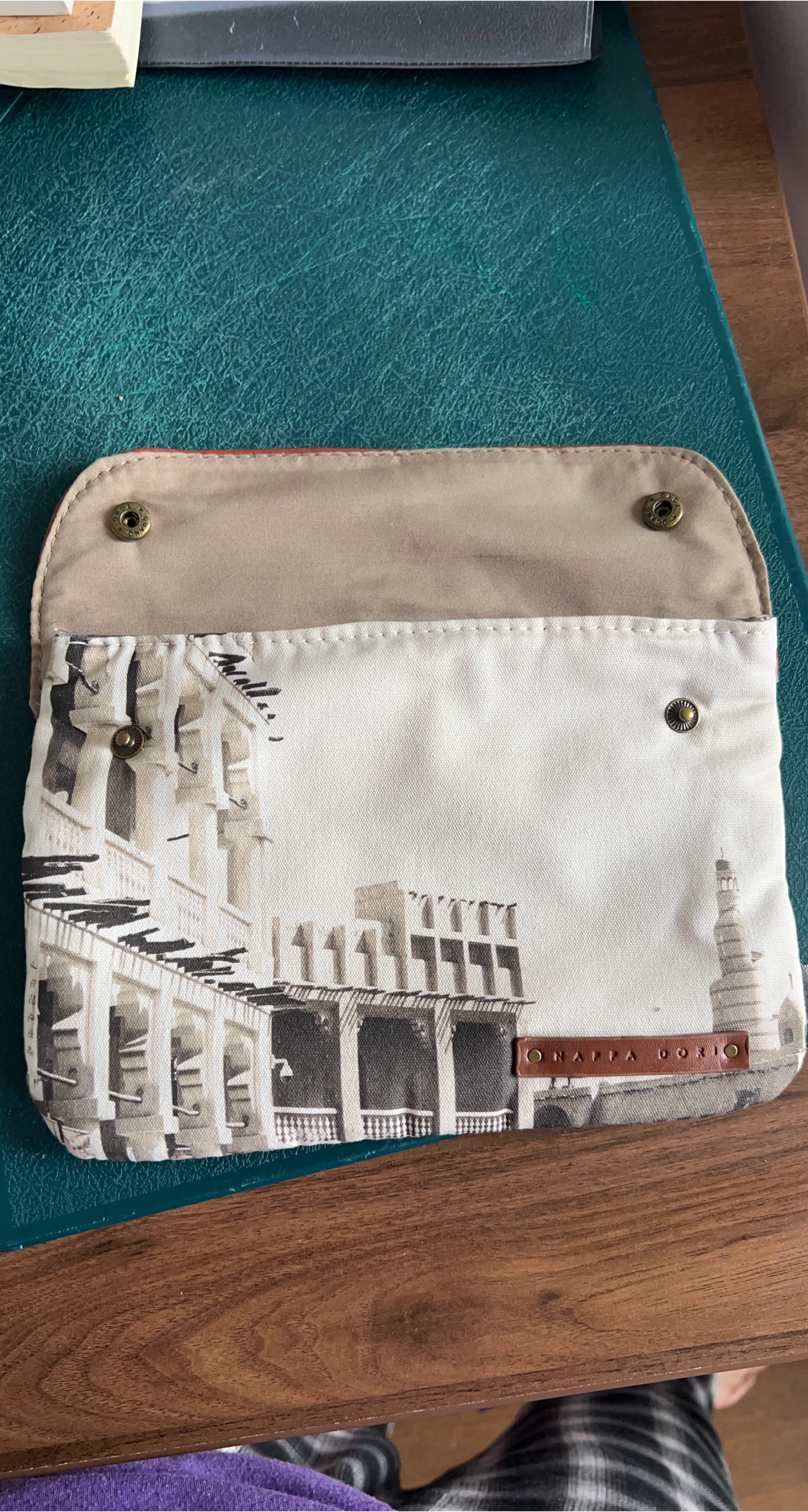 Selling a Nappa Dori travel pouch. It features a unique architectural print and a leather accent. Perfect for adding a touch of elegance to any outfit