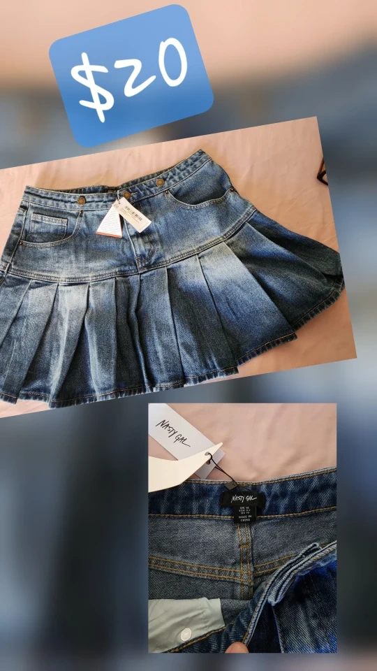 60Cute Nasty Gal denim mini skirt with pleated details! It's a size 10 and in great condition, ready for a new home