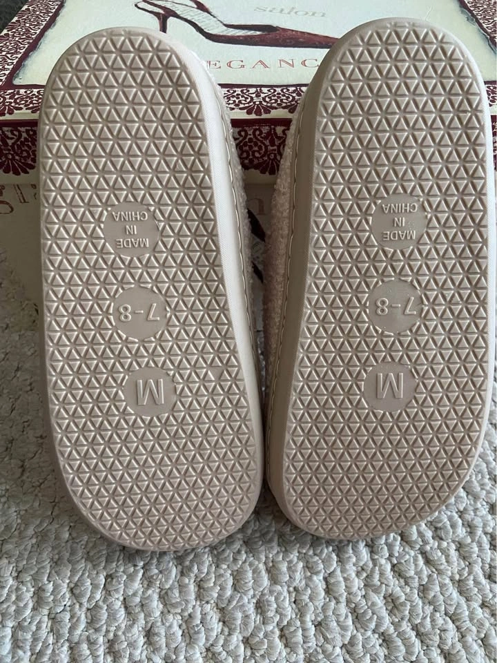 76Women’s Natural Life Cozy Sherpa slippers, in Cream Neon Smiley, fits size 5-6. *New! Cozy, soft Sherpa lining, boucle embroidery on outer. Hard rubber outsole. 100% polyester, spot clean. Original $36. NOTE… these slippers run an entire size small. They are marked as 7-8, however, THESE FIT A SIZE 5-6. My daughter is a 7.5, and these are way too small for her. Can absolutely try on with a sock at meeting place! Cash only. Meet in Garfield Ridge, Chicago, near Midway. Willing to meet near Oak Lawn, EP, Alsip ☺️