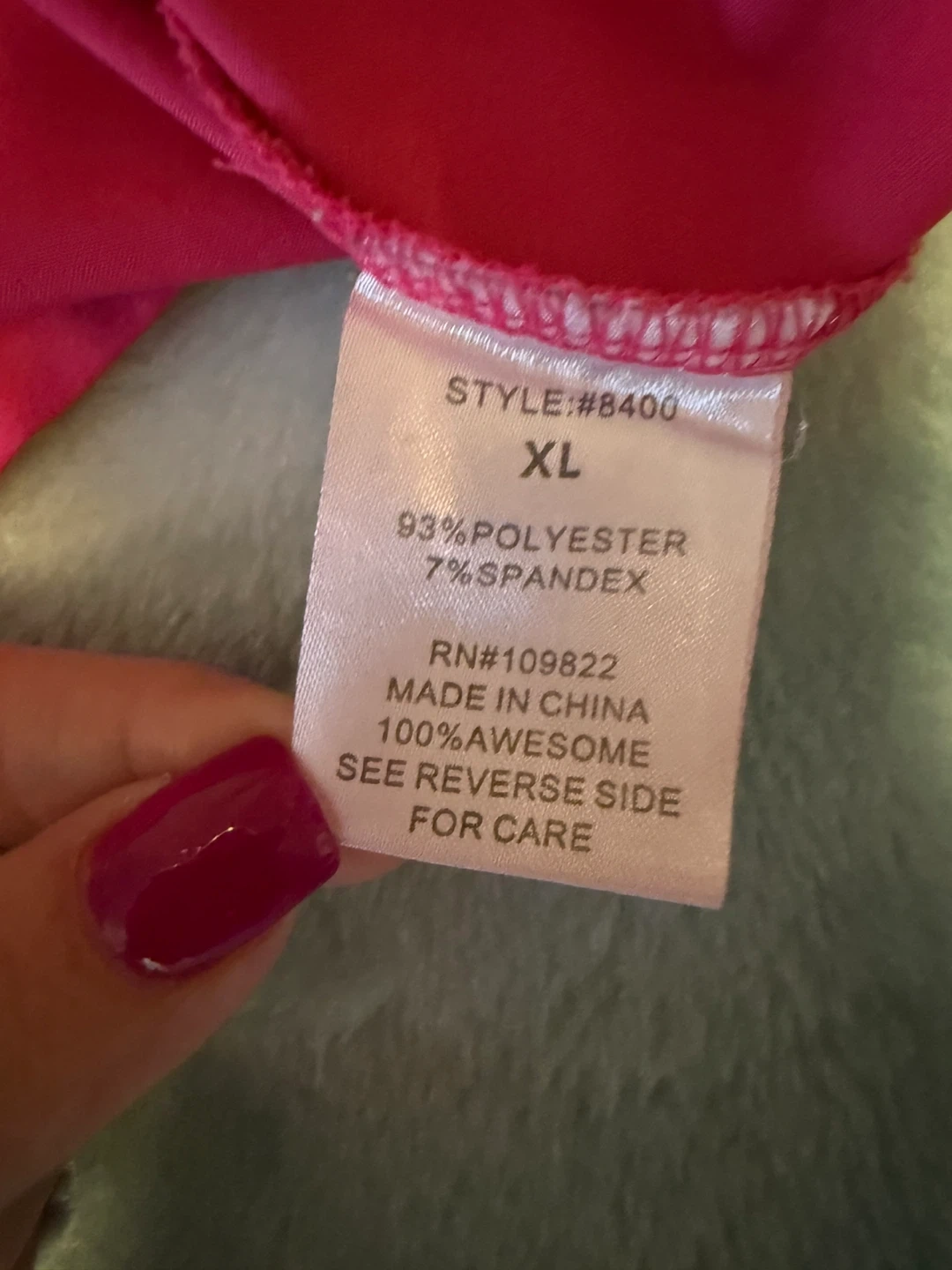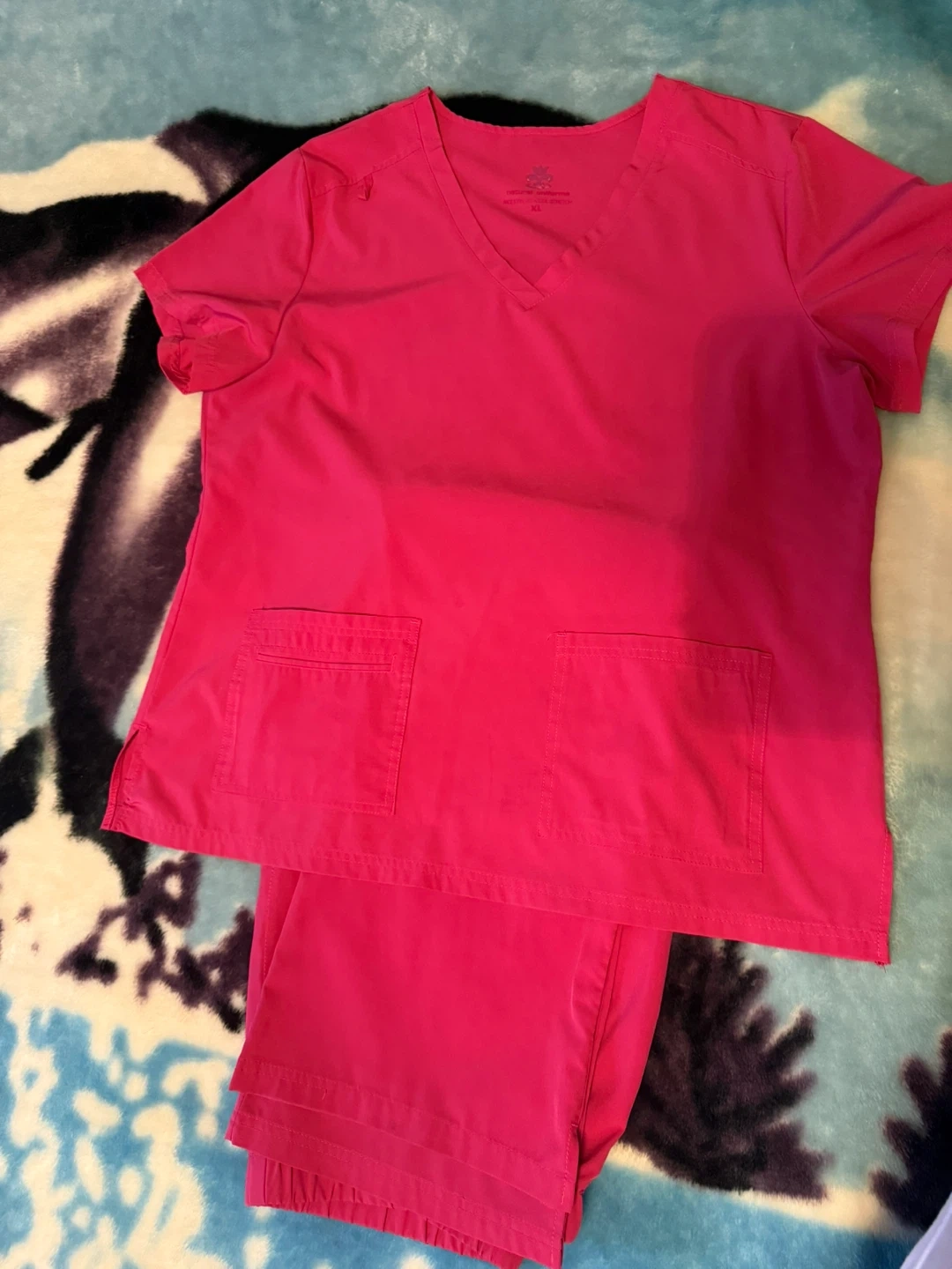 65Natural Uniforms scrub set in a vibrant hot pink color Size XL Made of 93% polyester and 7% spandex for a comfortable fit Modern fit with a cool stretch
